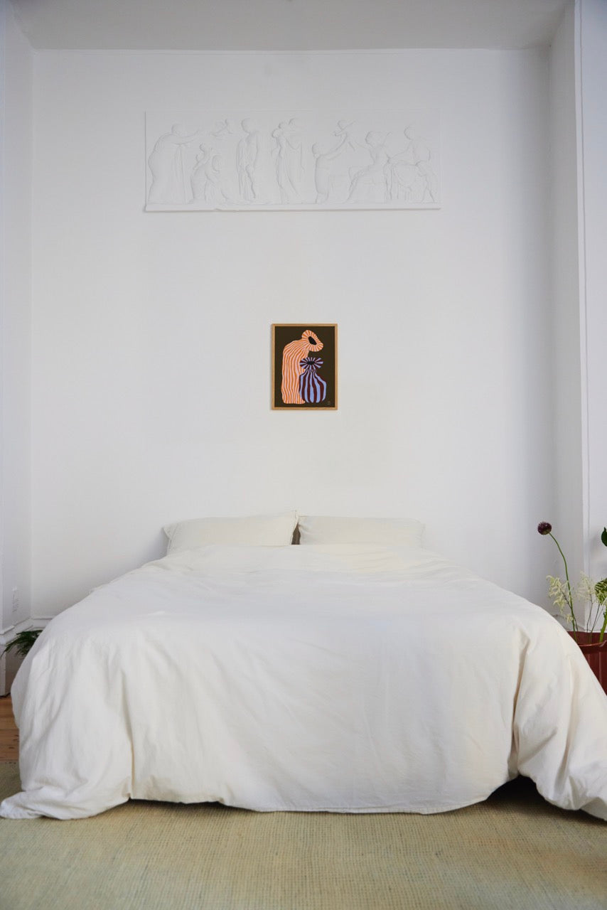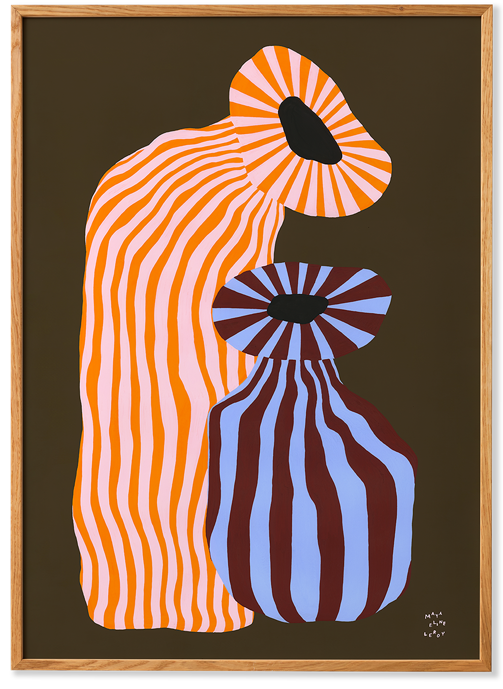 Doodle of a Doodle 07 by Maya Eline Leroy continues her playful interpretations of her ceramic practice into vibrant art prints. This composition features two of her Doodle Vases as though in dialogue - a big sibling in orange and pink, and a smaller sibling in light blue and deep burgundy.