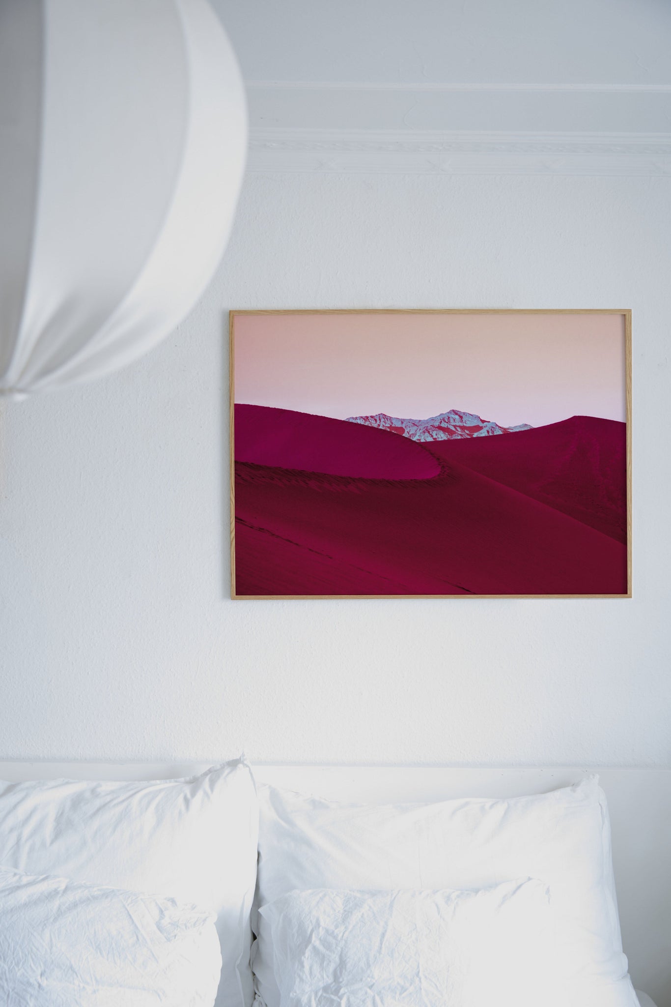 San-Francisco based photographer Xuebing Du's first collection for Paper Collective explores the intersection of natural and artificial elements, inviting viewers to see familiar landscapes and objects from a new perspective. By altering the color palette and isolating subject, Dunes III presents a surreal, dreamlike atmosphere that blurs the line between reality and imagination.