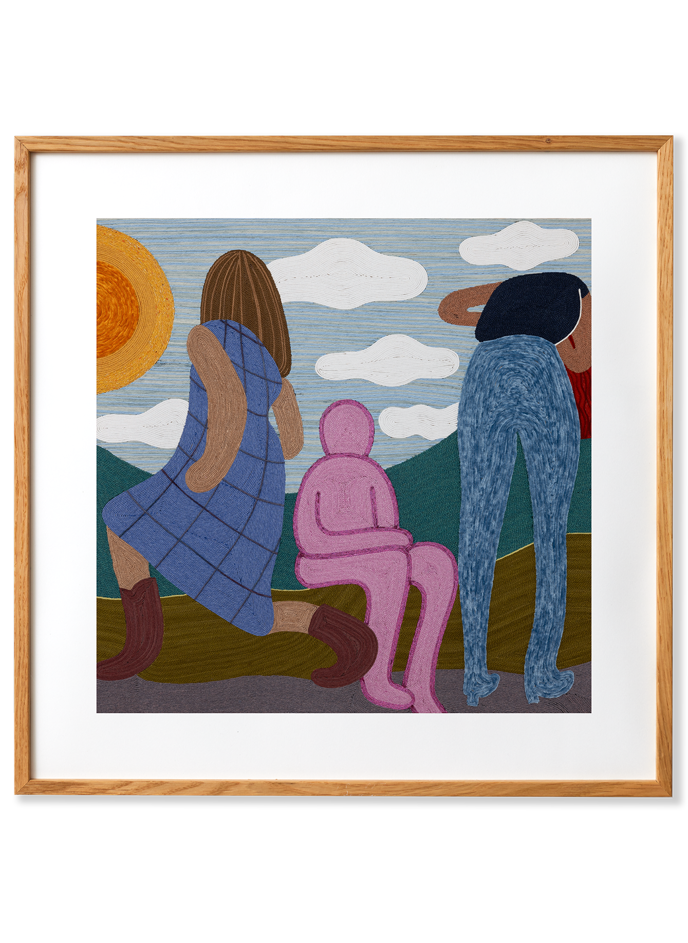 Entre Dos Caminos is an art print by the Colombian artist Paola Rodriguez. The first collection by Paola Rodriguez for Paper Collective is an exploration into traditional Colombian storytelling and folkart through her use of coiled yarn to create compositions. Colourful, eclectic and slightly surreal, her work is full of depth and character.