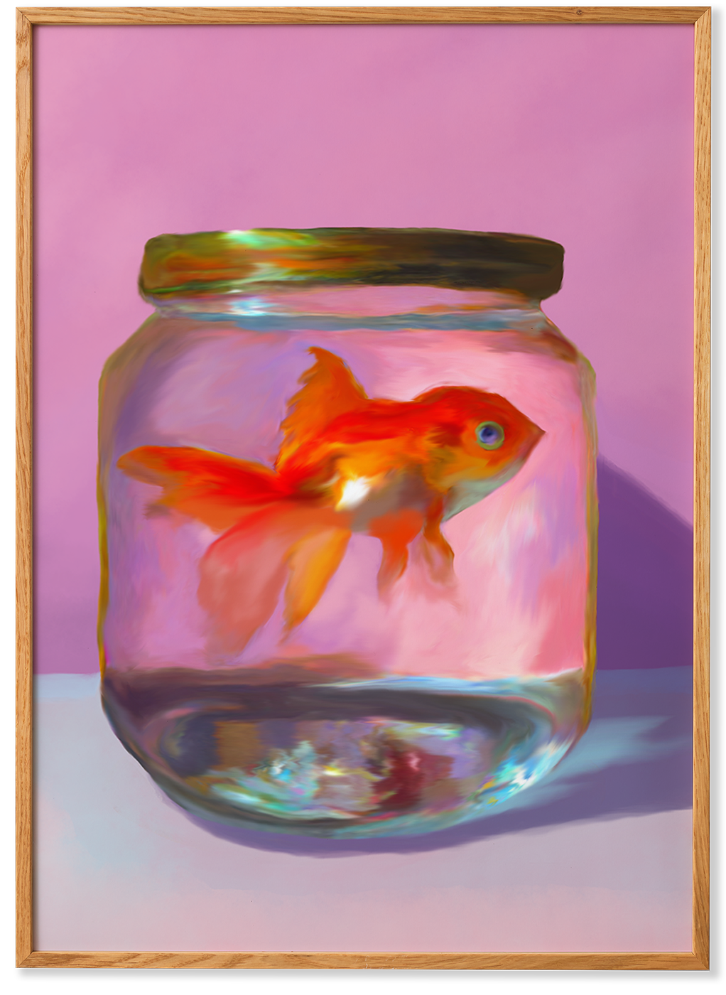 Fish is a humorous digital painting with references to modern technology and classic painted art by Danish artist Julie Sommer aka Misfitting Things. The artwork combines a feeeling of analogue expression and with mysterious digital and mesmerizing surfaces.