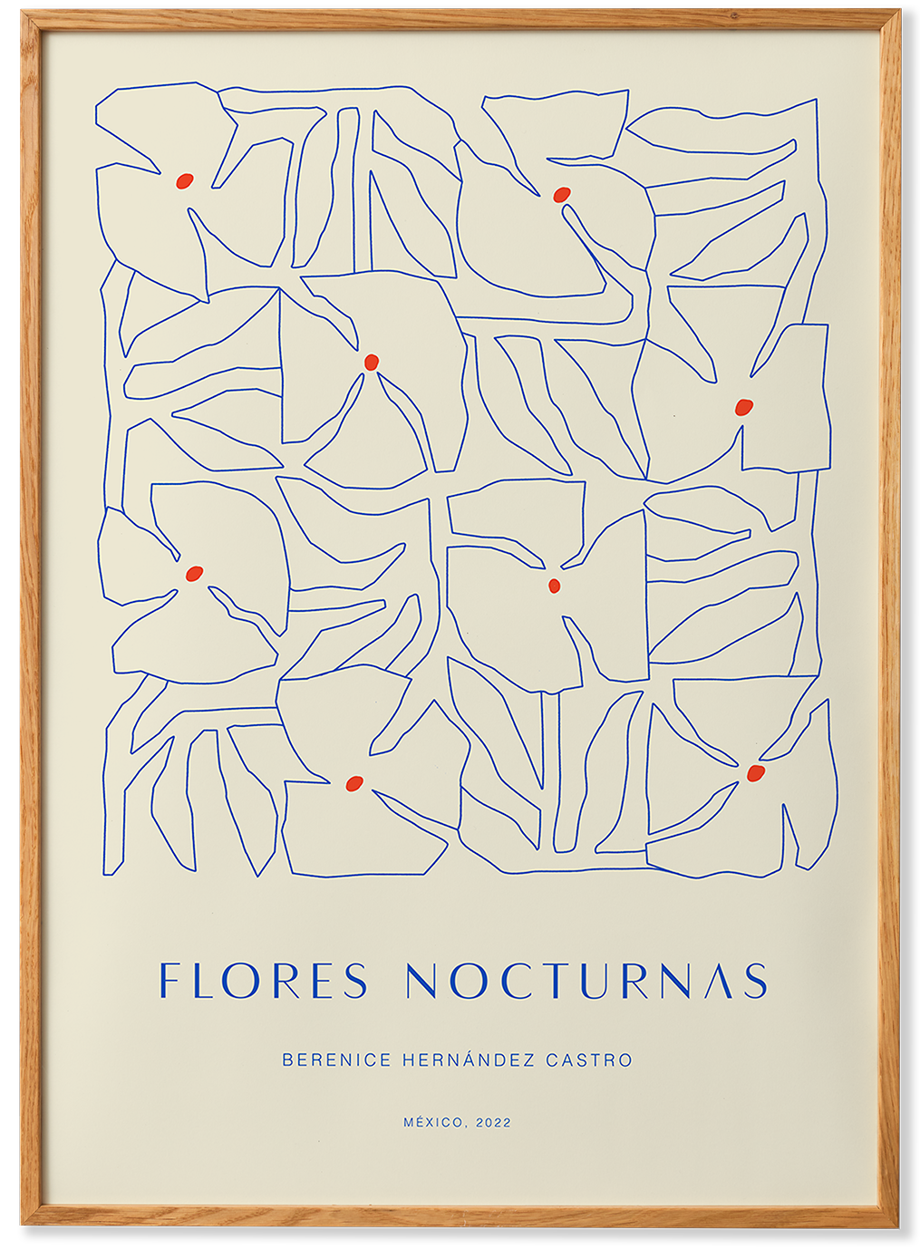 Painted in Mexico by Berenice Hernandez, then carefully scanned and printed as a fine art print for Paper Collective, Flores Nocturnas is inspired by the beauty of the nature in Berenice's home area of Monterrey MX.