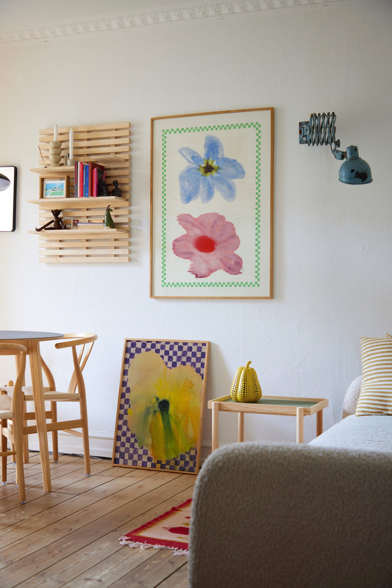 Flower with Checks presents a collection of three art prints by the Swedish art Liat Greenberg. Each piece has been painted on wood, providing Greenberg's signature water colour florals with a sense of unpredictability as the paint reacts to the timber grain. The graphic checkered pattern creates a bold offset, resulting in a contemporary take on the floral still life.