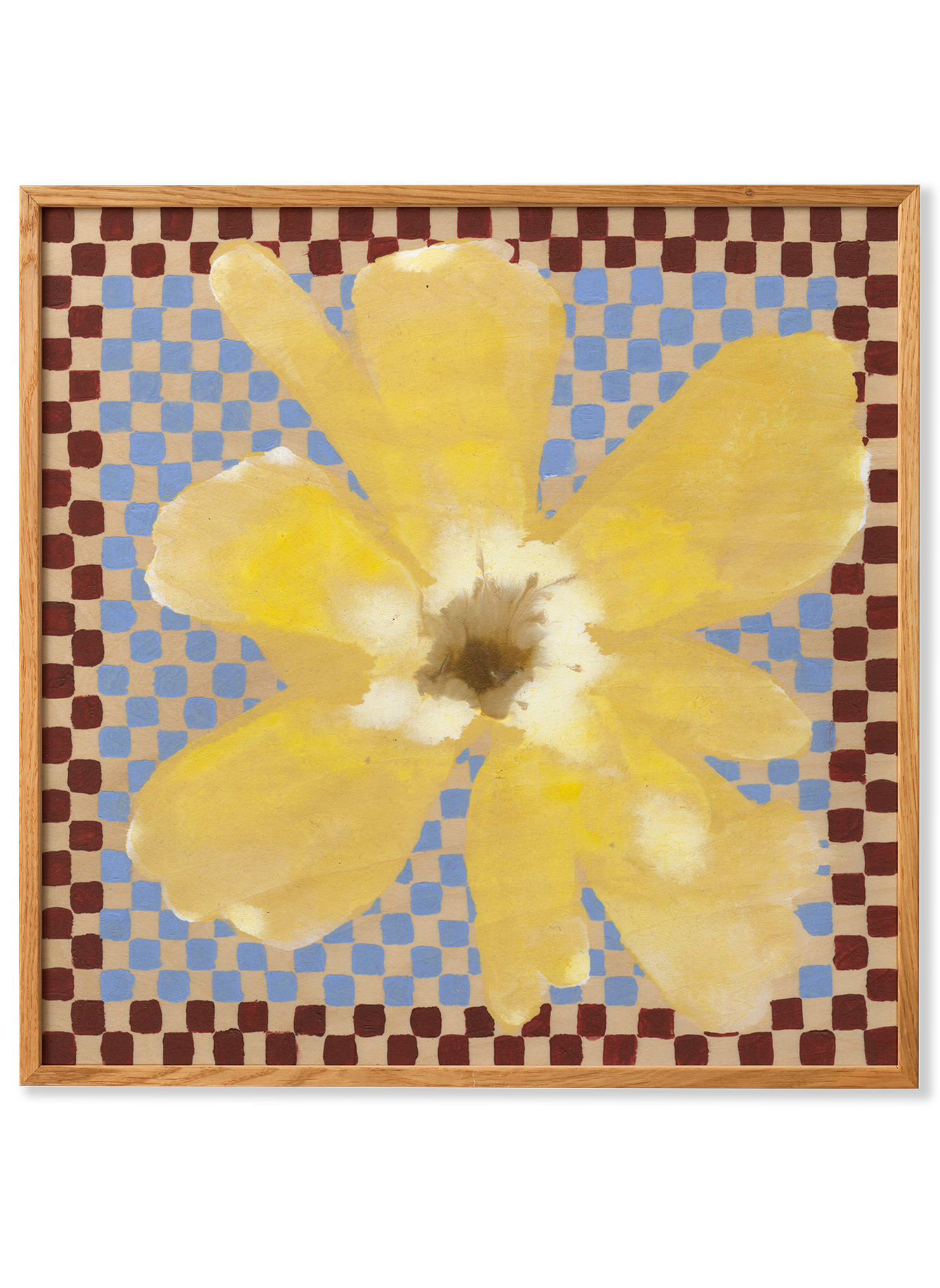 Flower with Checks presents a collection of three art prints by the Swedish art Liat Greenberg. Each piece has been painted on wood, providing Greenberg's signature water colour florals with a sense of unpredictability as the paint reacts to the timber grain. The graphic checkered pattern creates a bold offset, resulting in a contemporary take on the floral still life.