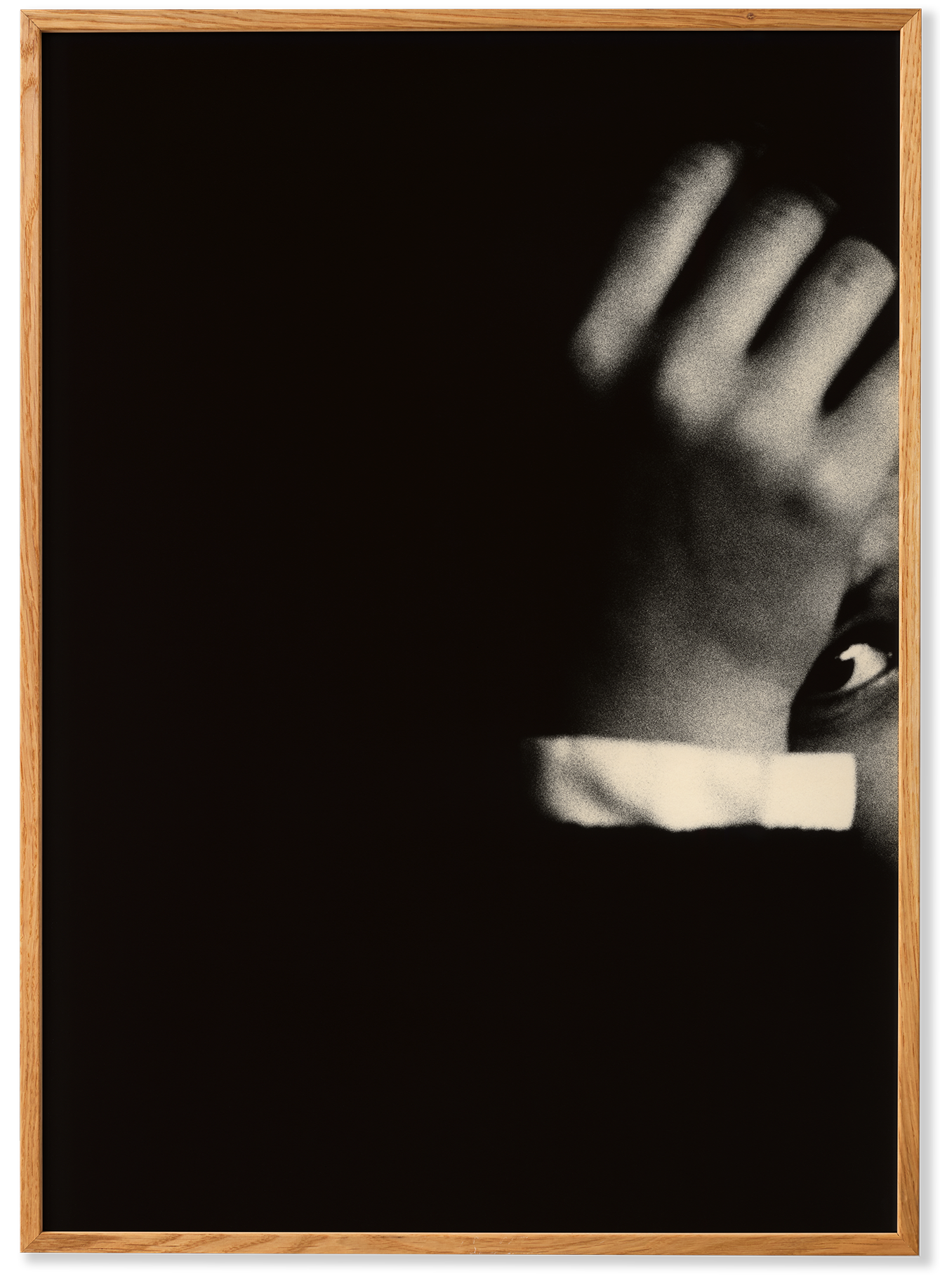 Hand and Eye is a photographic art print by Finish dark room artist Mikael Siirilä. An extension to Siirilä's ongoing collaboration with Paper Collective, his latest works focus on dominant black compositions. Simple forms emerge from the dark, complete with rich textures and subtle shifts in tone that are added throughout the silver gelatin process.