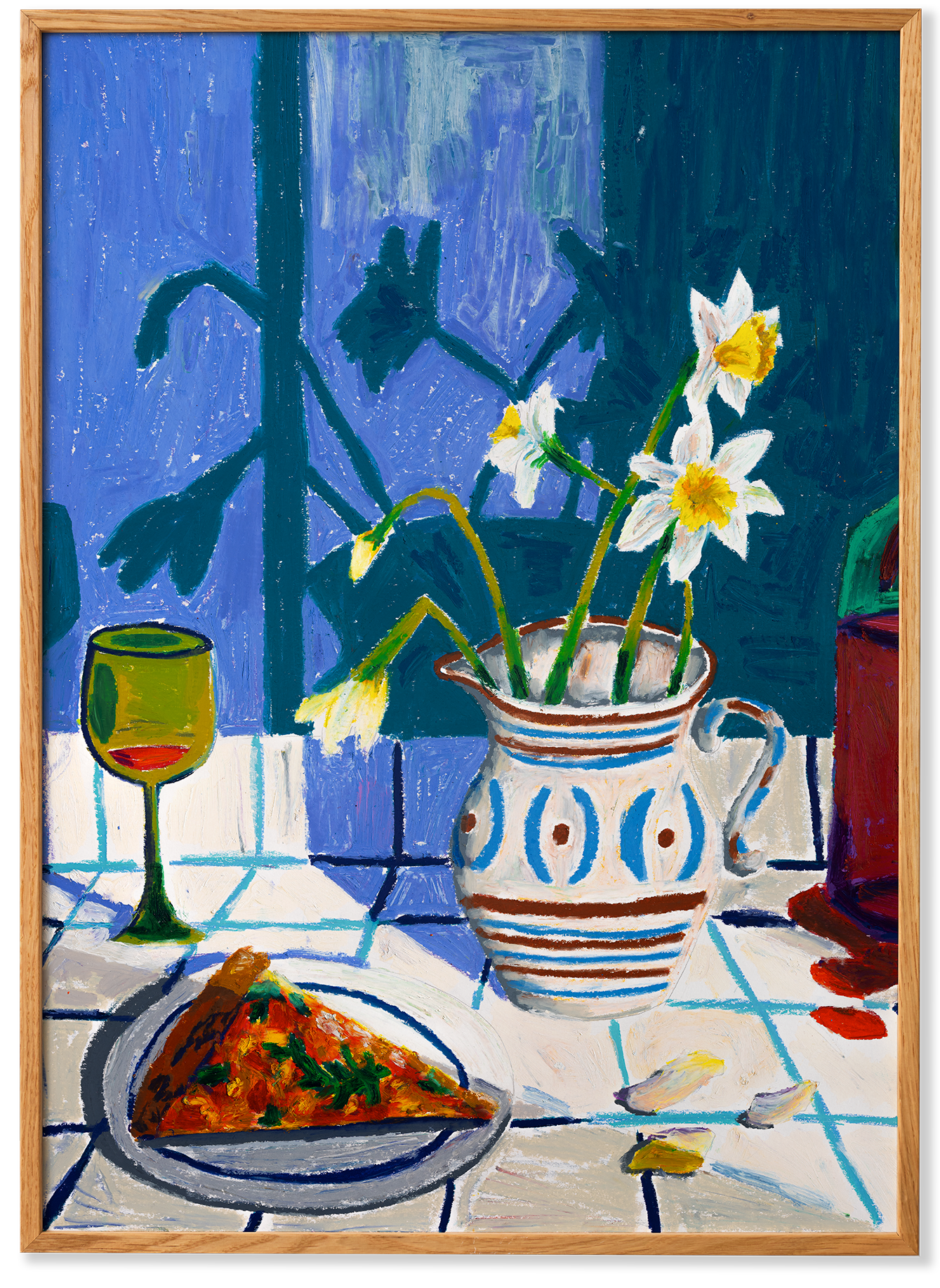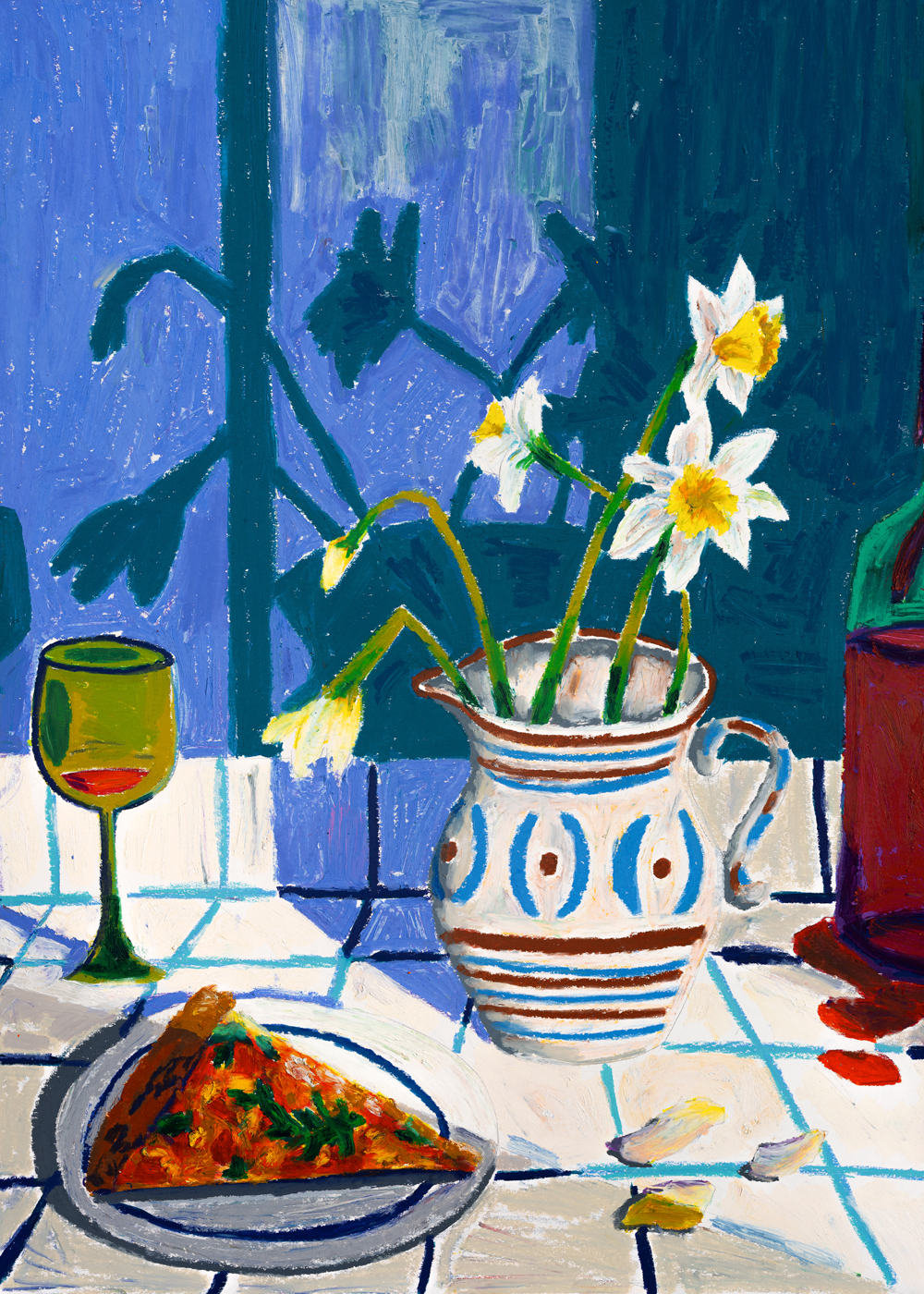After Party is an artwork by long-term Paper Collective collaborating artisAdee Ardon. Returning with a new set of artworks created through a vibrant use of pastels, Adee Ardon channels the warmer months spent in the sun with good food and great company. The vibrancy of her artwork is punctuated by a dominant use of blue within her latest compositions.