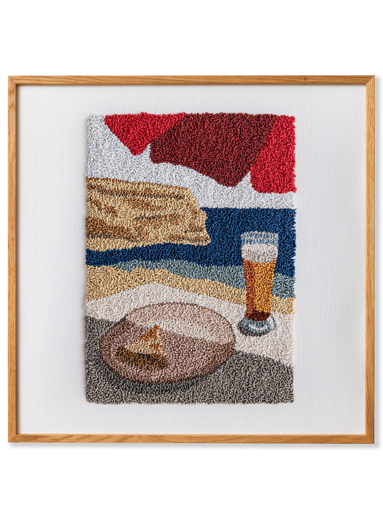 With her first collection for Paper Collective, Adrienna Matzeg captures the essence of hot afternoons, reflecting on the connection and joy that come from sharing drinks and snacks with others. Albufeira transforms her photography into intricate embroidery, the composition evoking a dreamlike nostalgia that preserve her snapshots in textile form.