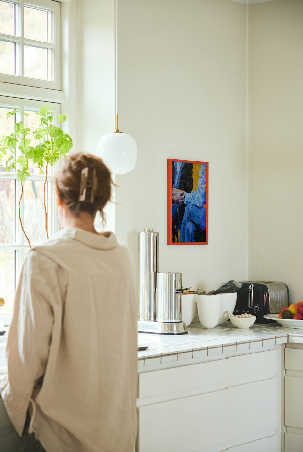 Verk av den Köpenhamnsbaserade konstnären Lolita Pelegrime transporterar energin och vitaliteten i vardagliga ögonblick till konstverk fulla av djup och textur. Genom Alchemy fångar Pelegrime ett intimt ögonblick mellan två figurer, deras sammankopplade händer översatta genom rik, strukturerad oljefärg på duk. De blå och svarta tonerna av figurernas kläder sitter mot en levande bakgrund i gult, varje penseldrag bidrar till en komposition full av textur och rörelse.