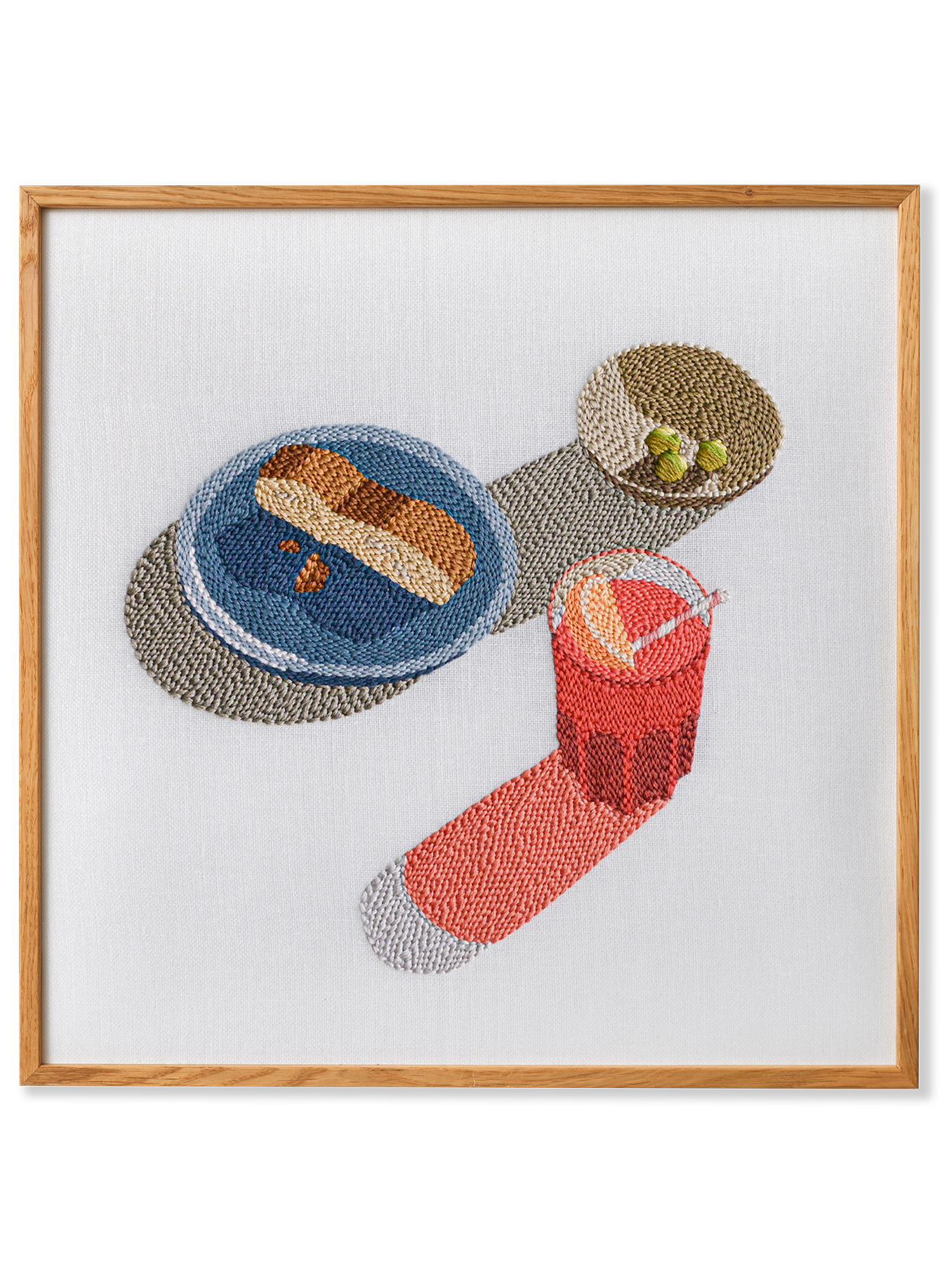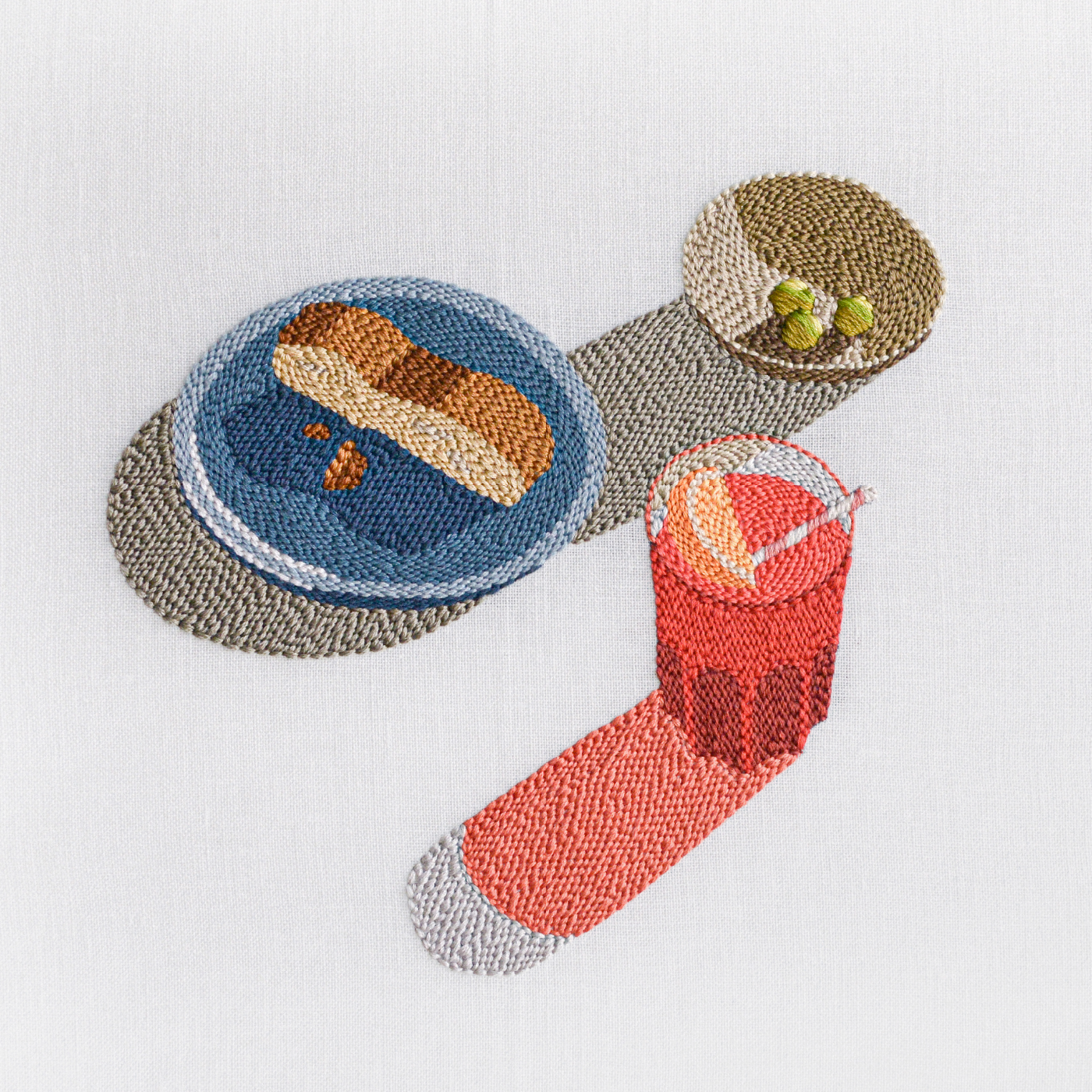 With her first collection for Paper Collective, Adrienna Matzeg captures the essence of hot afternoons, reflecting on the connection and joy that come from sharing drinks and snacks with others. Aperitif transforms her photography into intricate embroidery, the composition evoking a dreamlike nostalgia that preserve her snapshots in textile form.