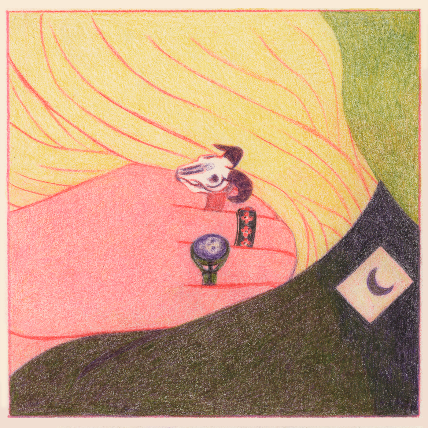 Bagues is an art print by French illustrator Line Hachem. Hachem's first collection of works for Paper Collective excude a sense of youthfull energy through her subjects, alongside vibrant colours and textures. Capturing moments in nature with friends, each compostion is created through delicate linework in pencil, coming together to create compositions that are both humble yet captivating.