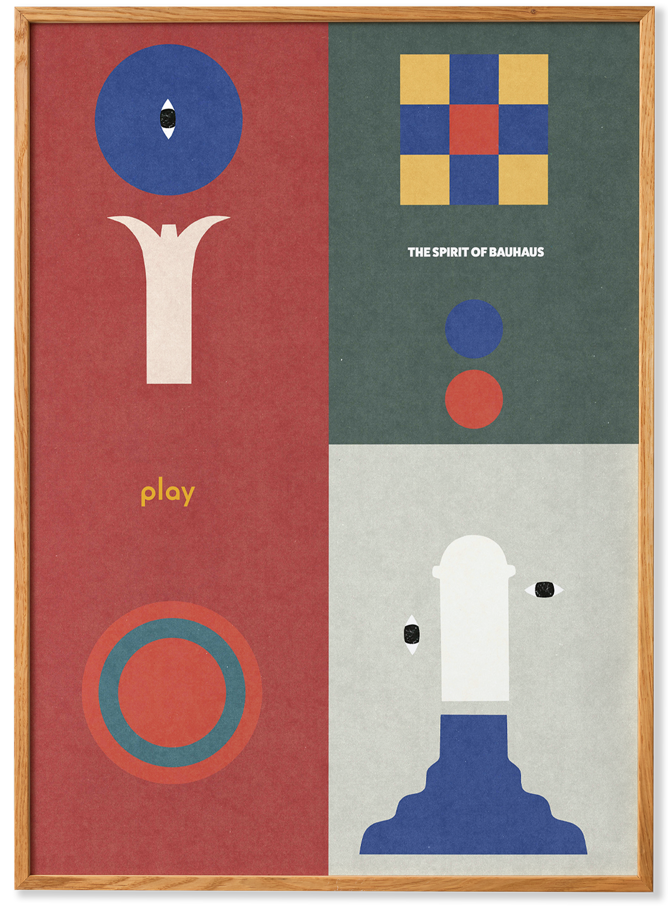 Bauhaus 01 is a playful art print by English artist Imo Sinclair. Imo Sinclair's latest collection combines abstract forms and playful colour combinations to create compositions inspired by the graphic and textile design from the Bauhaus movement. The collection is brought to life through eyes that give the abstract forms a sense of character.