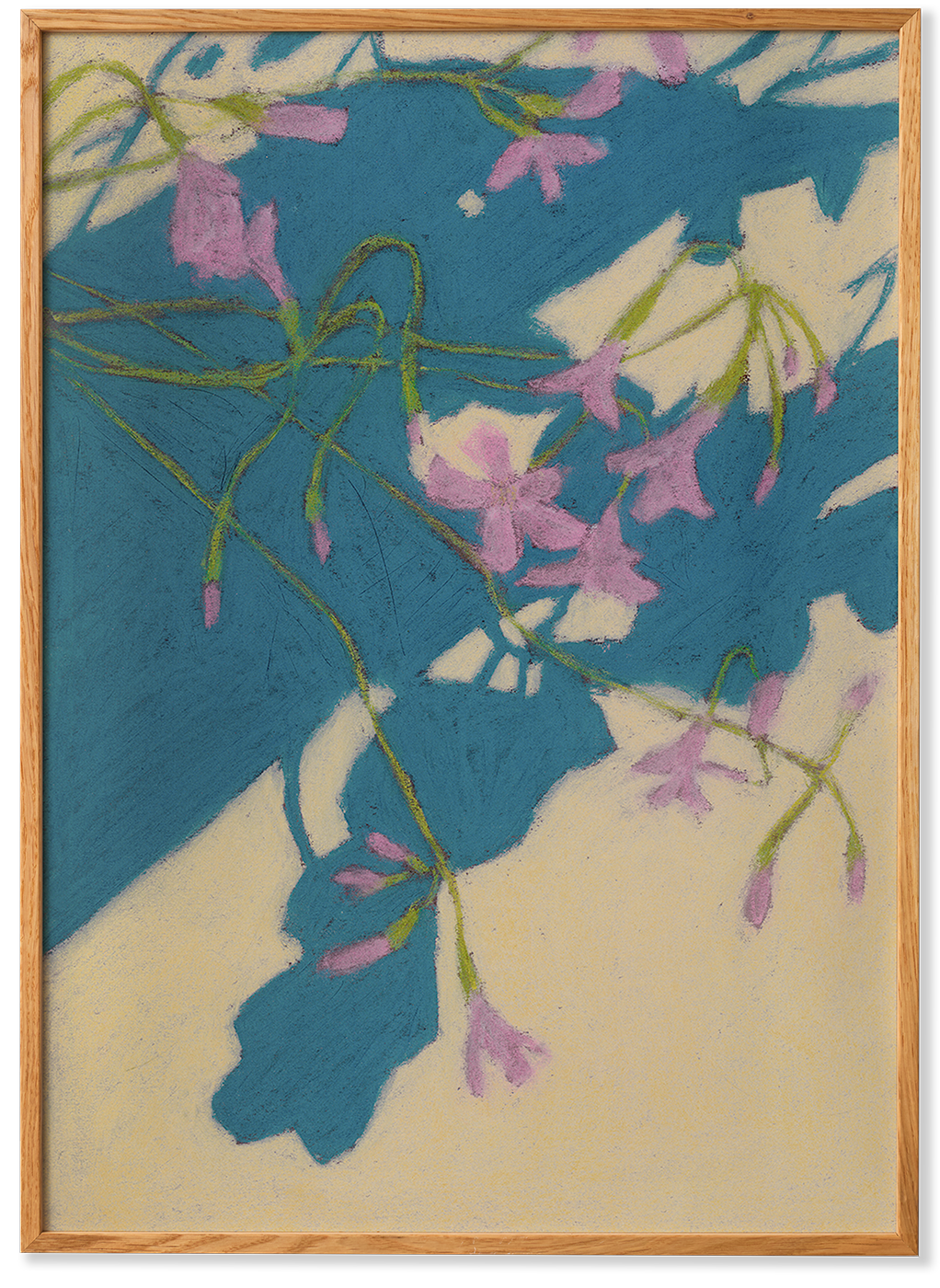 Finish designer and artist Reeta Laine presents her first collection for Paper Collective inspired by quiet moments reinterpreted through vibrant colours and soft compositions. Bouquet in Copenhagen features soft pink flowers mirrored by a dappled shadow in a bold blue. Created using dry pastel, Laine channeled her inner child when embracing the unpredictability of the medium.
