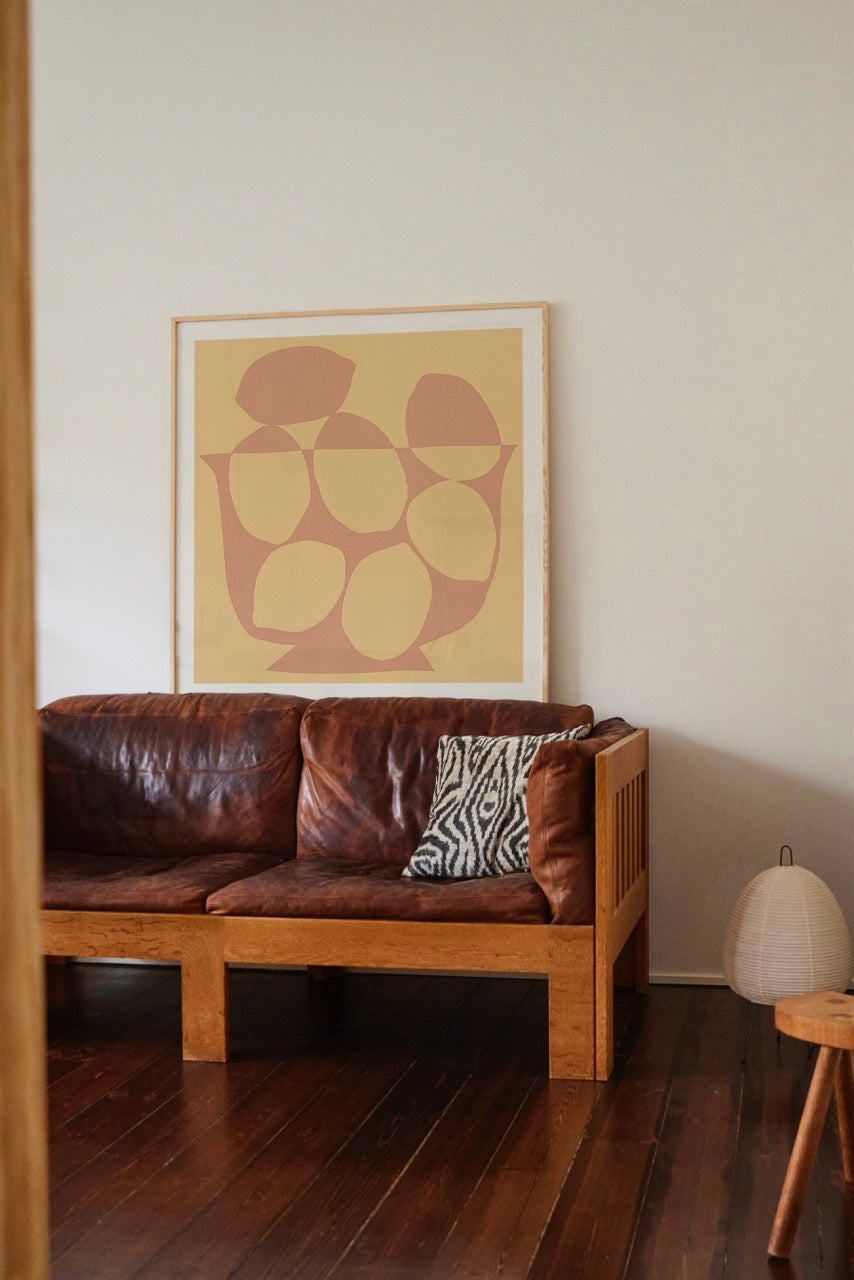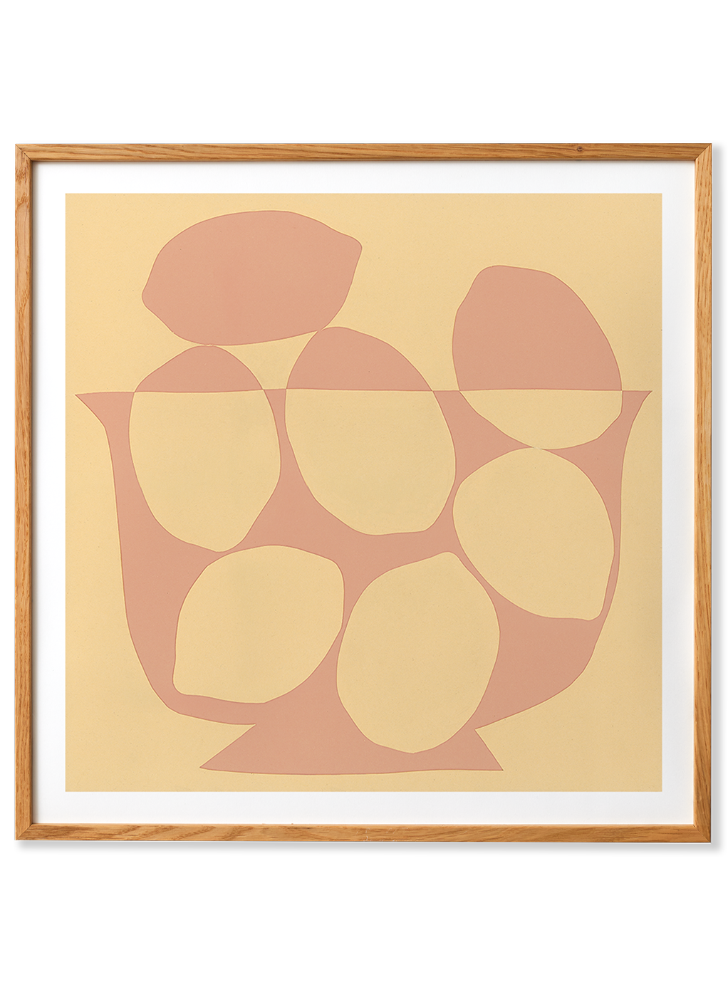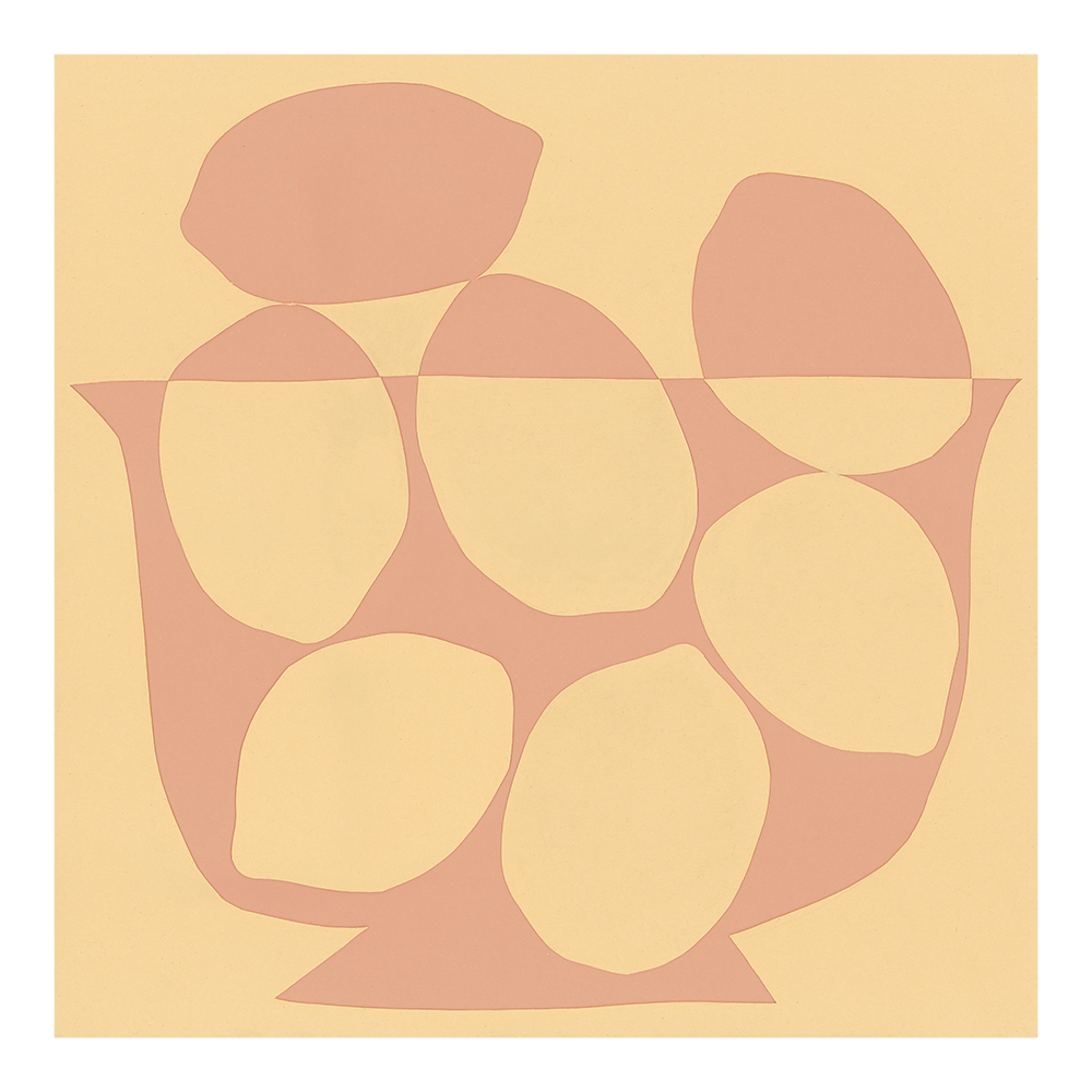 With her first collection for Paper Collective, Toronto based illustator Leia Bryans has focused on simple compositions that reflect everyday life. Created from cut origami paper in muted tones of yellow and pink, Bowl of Lemons plays with positive and negative space to reveal a simple still life scene.