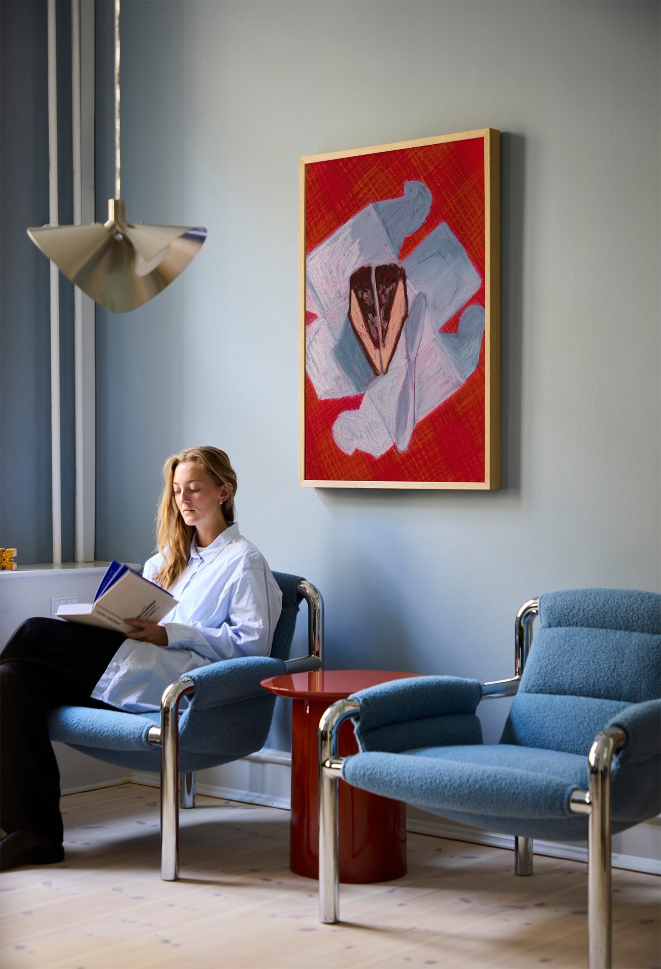 Finish designer and artist Reeta Laine presents her first collection for Paper Collective inspired by quiet moments reinterpreted through vibrant colours and soft compositions. Cake for Two captures a shared sweet moment atop a vibrant red picnic blanket. Created using dry pastel, Laine channeled her inner child when embracing the unpredictability of the medium.