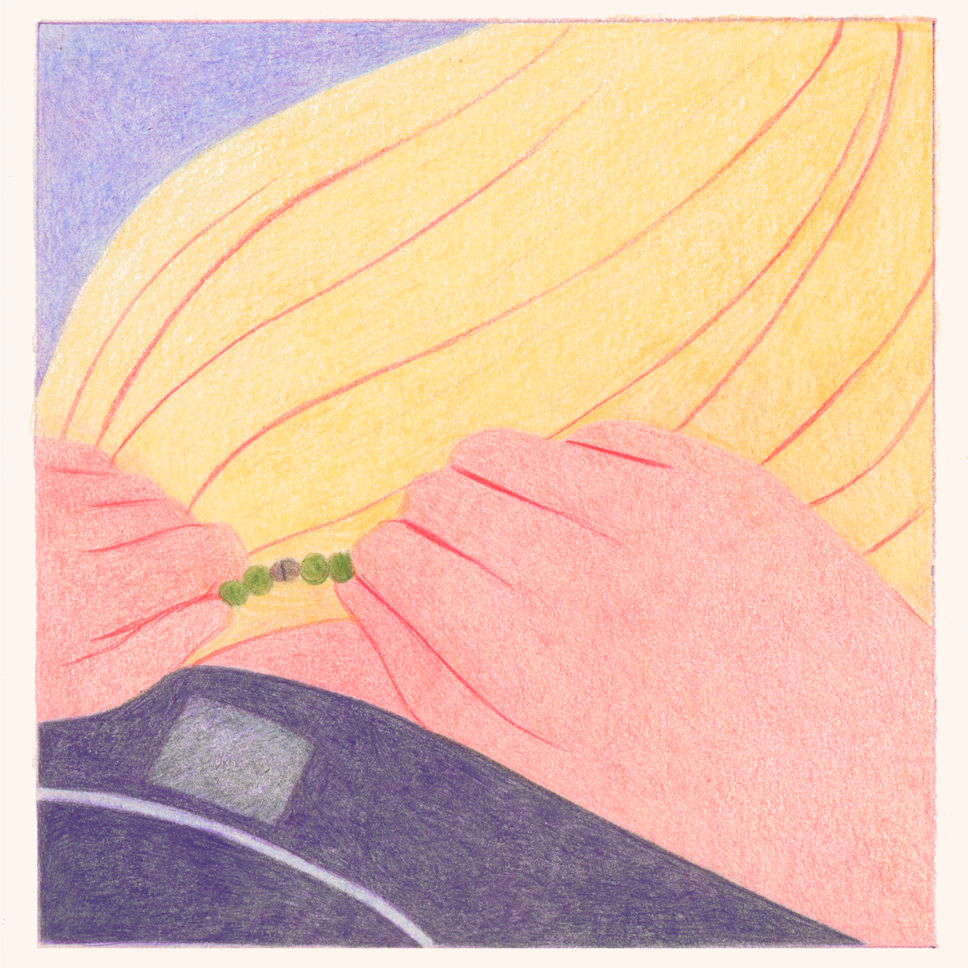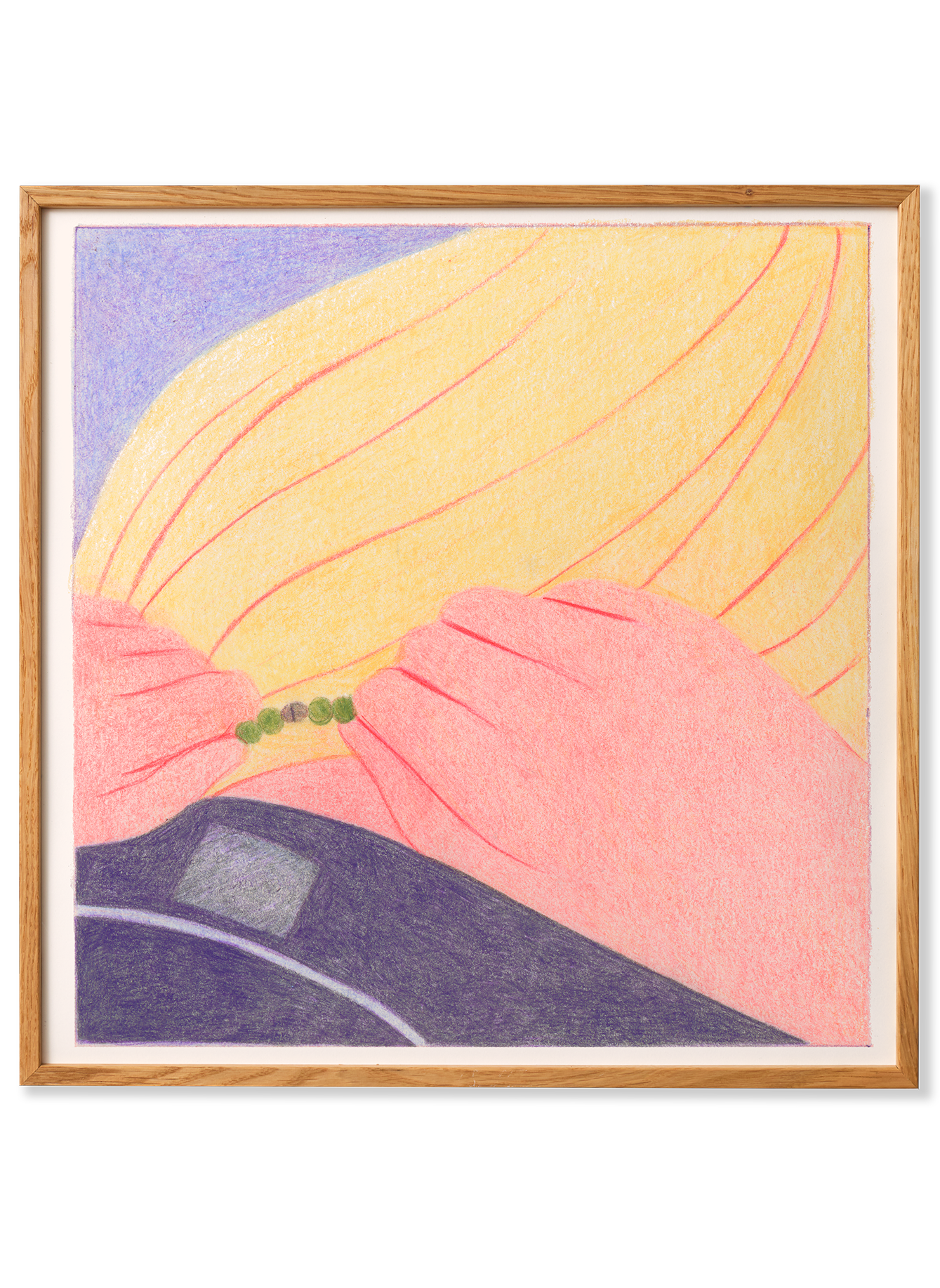 Collier Carre is an art print by French illustrator Line Hachem. Hachem's first collection of works for Paper Collective excude a sense of youthfull energy through her subjects, alongside vibrant colours and textures. Capturing moments in nature with friends, each compostion is created through delicate linework in pencil, coming together to create compositions that are both humble yet captivating.