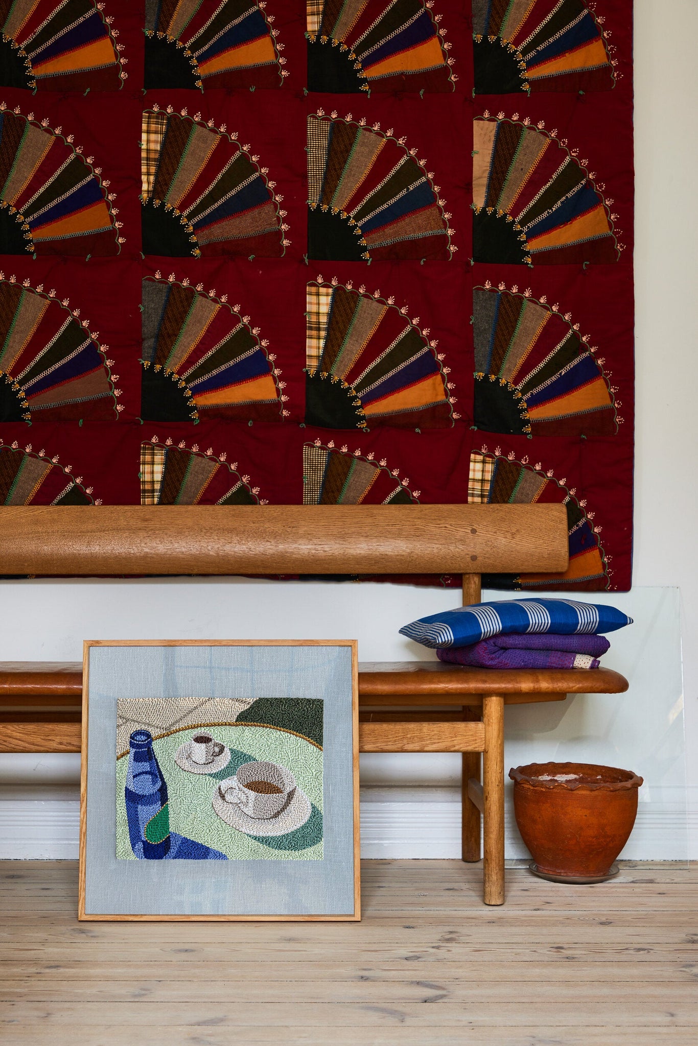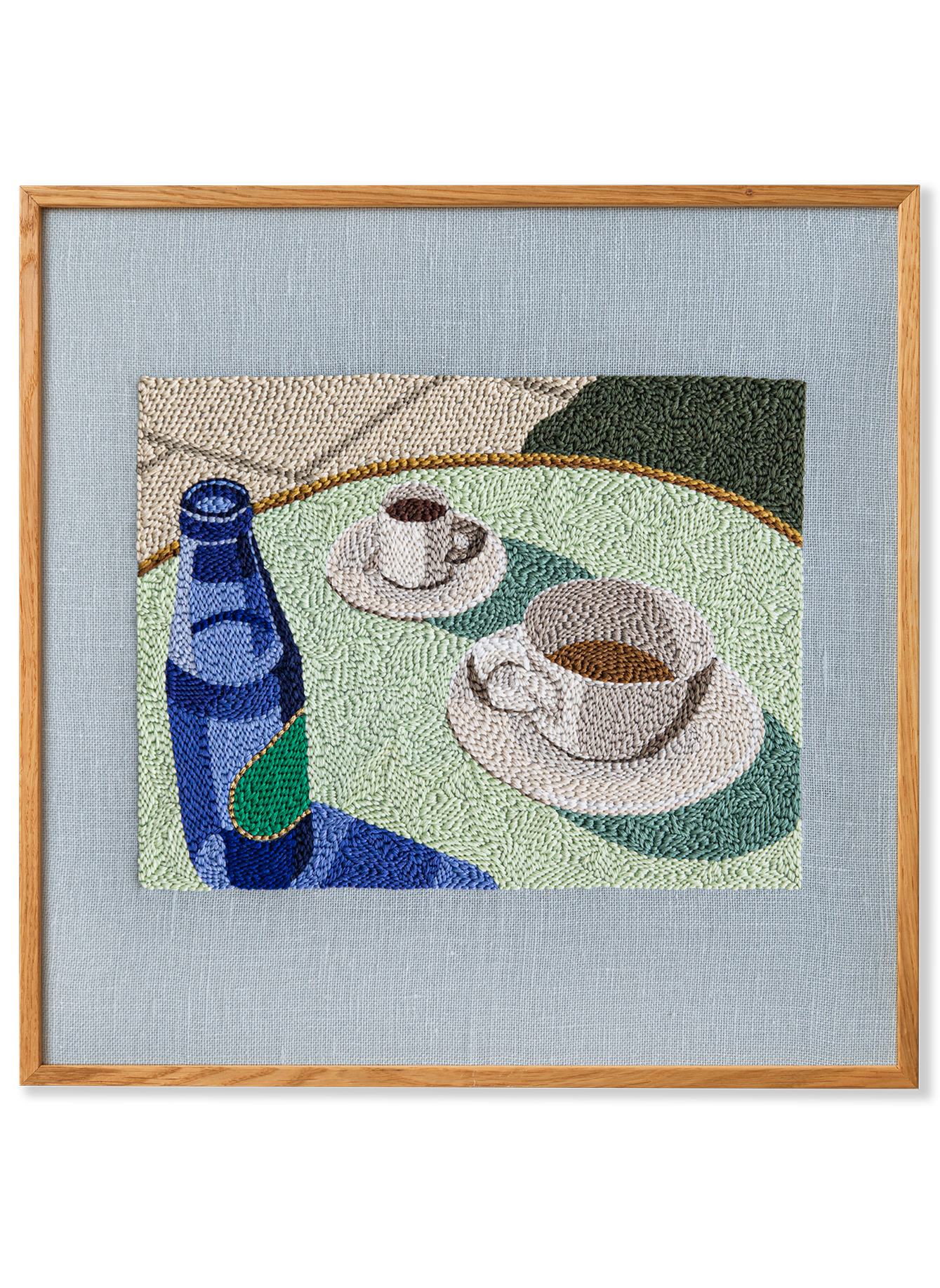 With her first collection for Paper Collective, Adrienna Matzeg captures the essence of hot afternoons, reflecting on the connection and joy that come from sharing drinks and snacks with others. Jet Lag in Lisbon transforms her photography into intricate embroidery, the composition evoking a dreamlike nostalgia that preserve her snapshots in textile form.