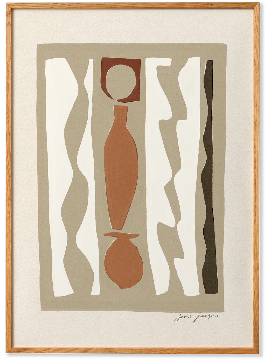 Sacrée Frangine's latest collection of art prints tell the story of a slow and calm day through three collage compositions. Nufiala - meaning twilight in Mina, the native language of Benin, gives the collection a suble connection to the cultural heritage of Aline - one half of the artistic duo.