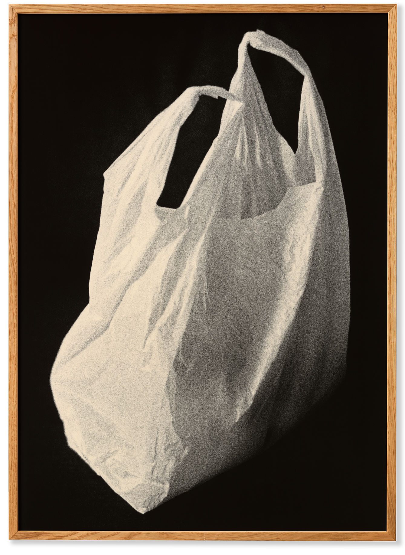 Plastic Bag is a photographic art print by Finish dark room artist Mikael Siirilä. An extension to Siirilä's ongoing collaboration with Paper Collective, his latest works focus on dominant black compositions. Simple forms emerge from the dark, complete with rich textures and subtle shifts in tone that are added throughout the silver gelatin process.