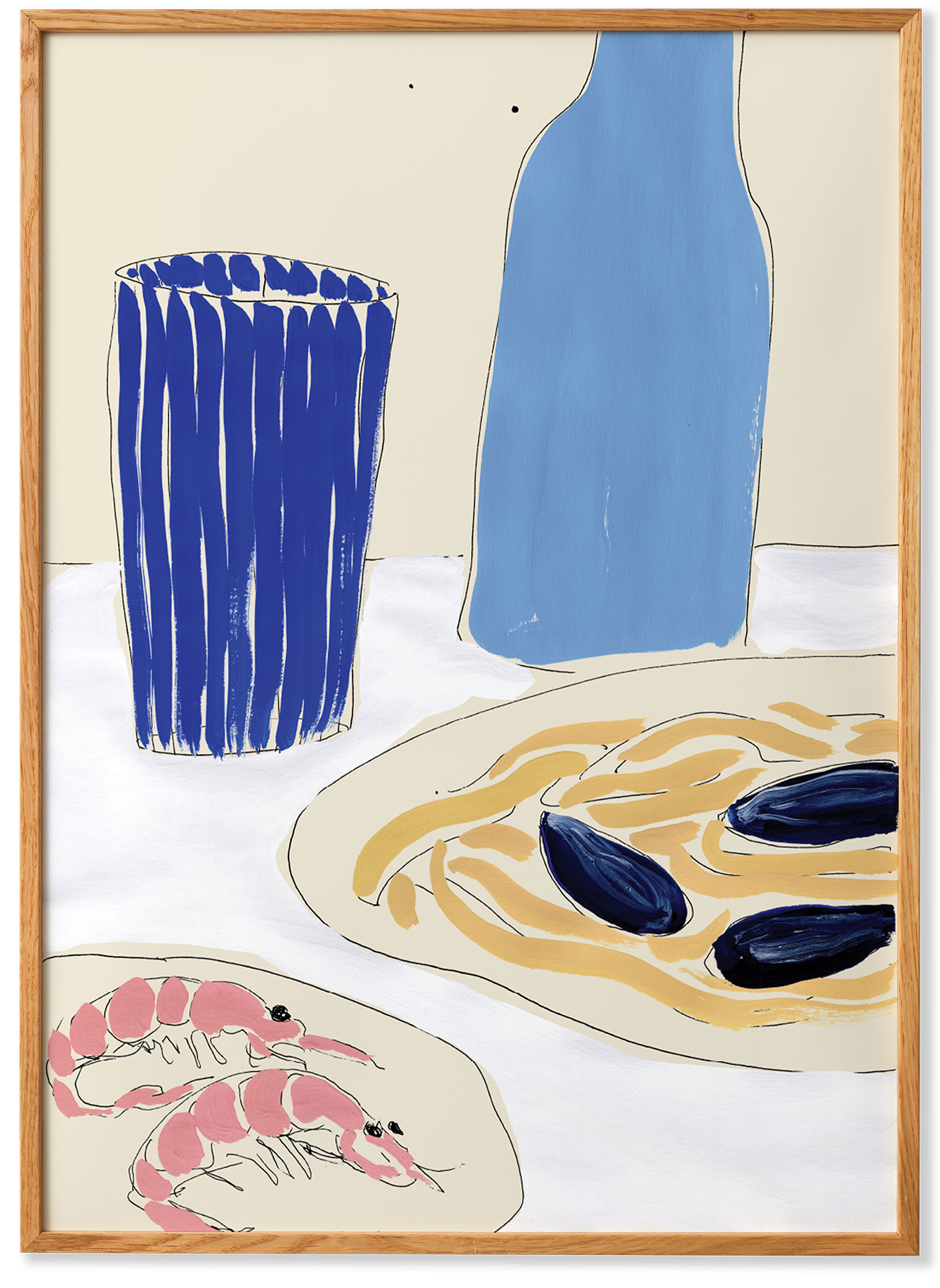 Positano Lunch is an art print by the Rome based artist Sia Marche. Chanelling the romance and spirit of Tuscany in which she lives and works, Marche's first collection for Paper Collective focuses on simple moments and acts of pleasure. Created from gouche and thin lines in black ink, her compositions transport you to a moment at the Italian seaside where great food and wine take centre stage.