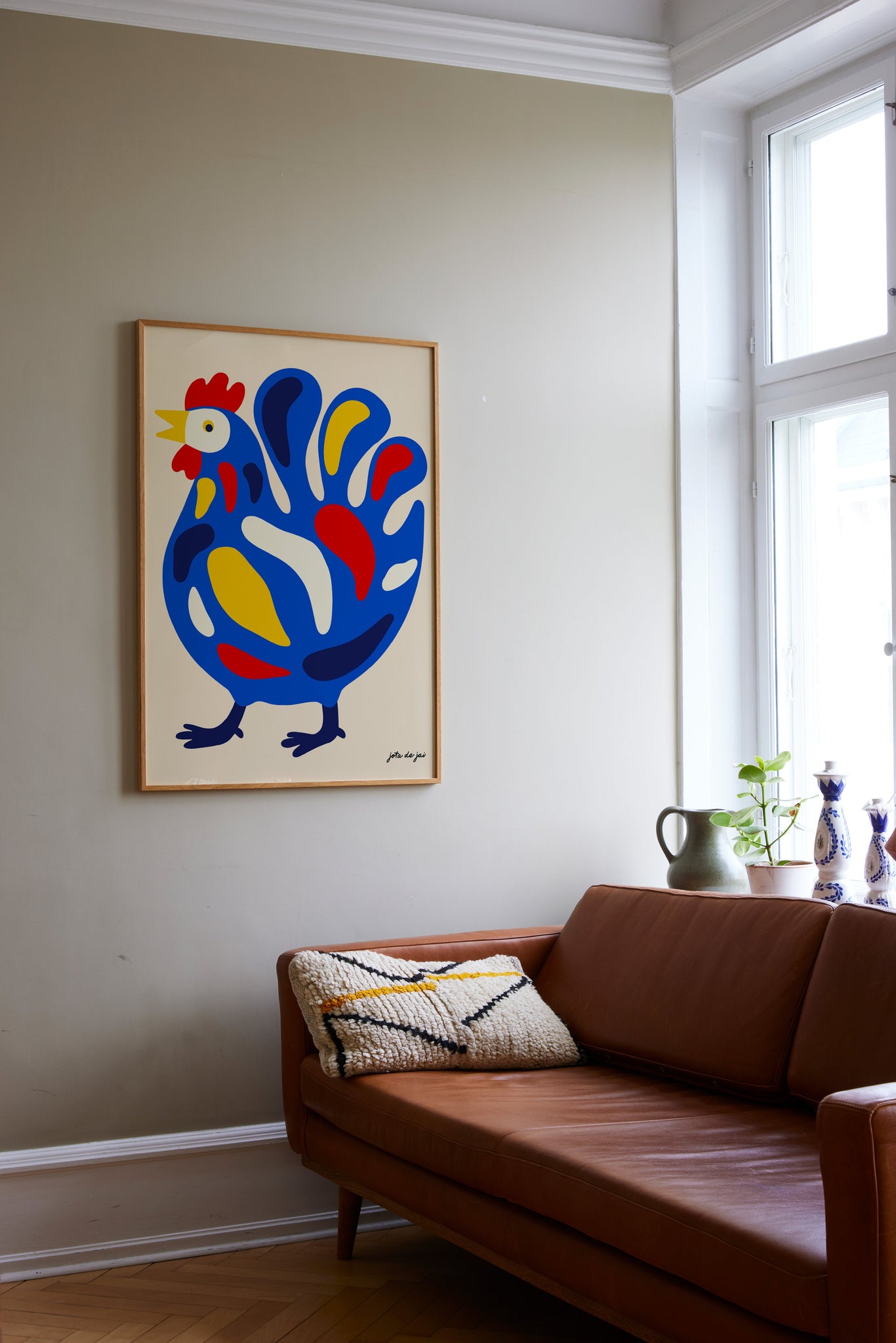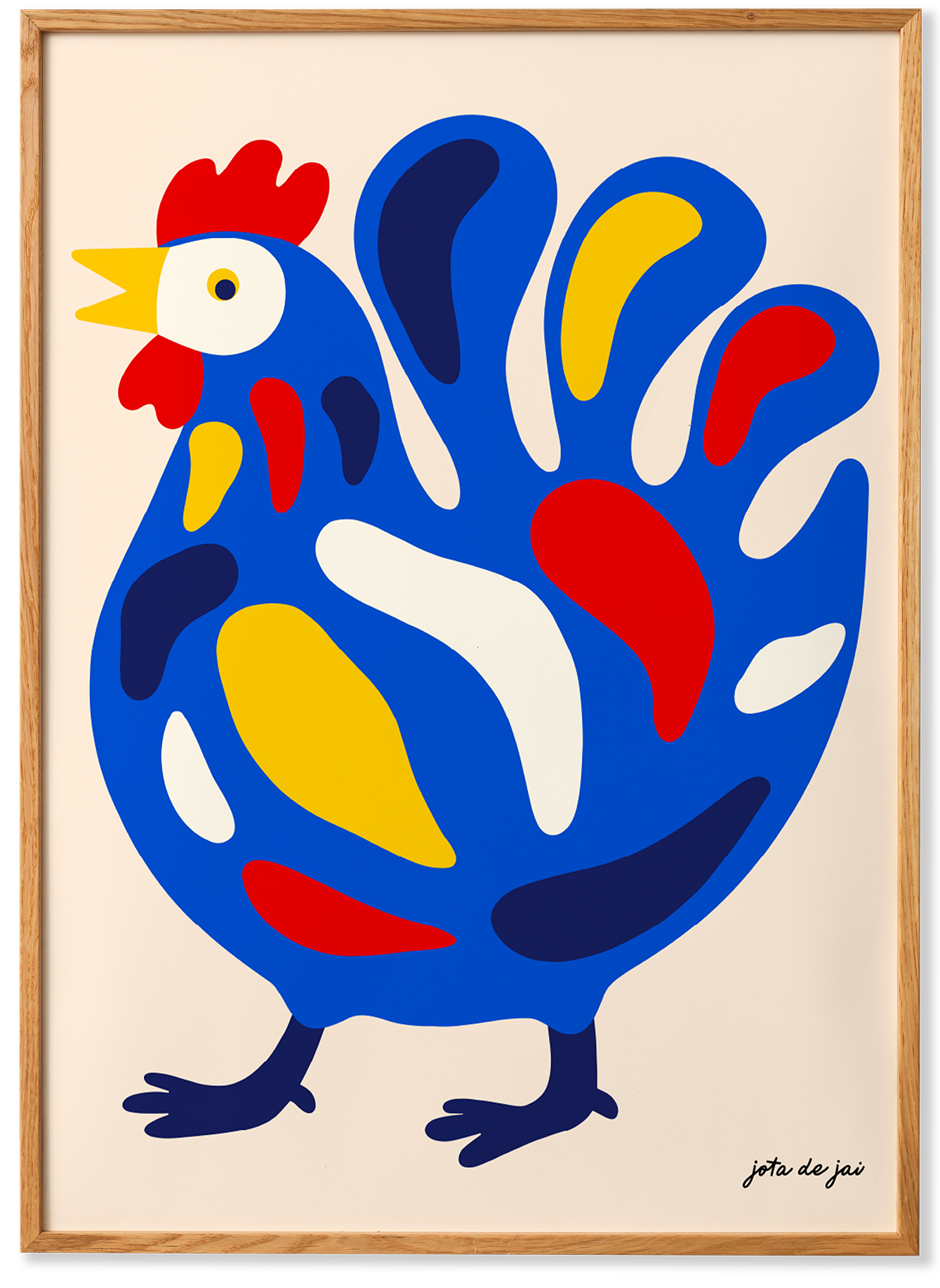 Rooster by Spanish artists Jota De Jai is part of a family of illustrated animals inspired by Polish folk art. Each illustration is an attepmt to reduce the complexity of an animal to its simplest and most essential form. Through bold colours and simple patterns, the character of each animals is brought to life through a sense of fun and play.