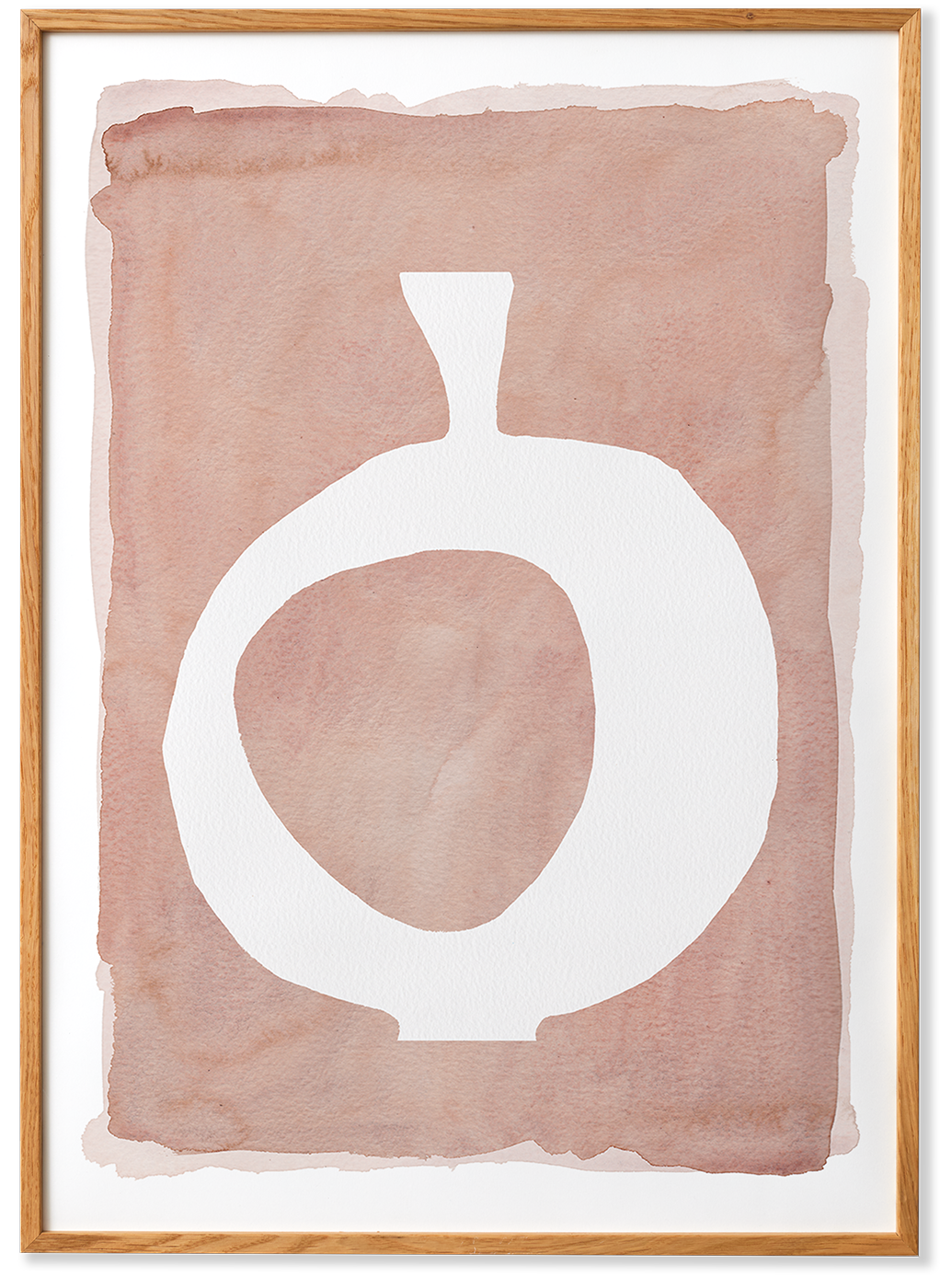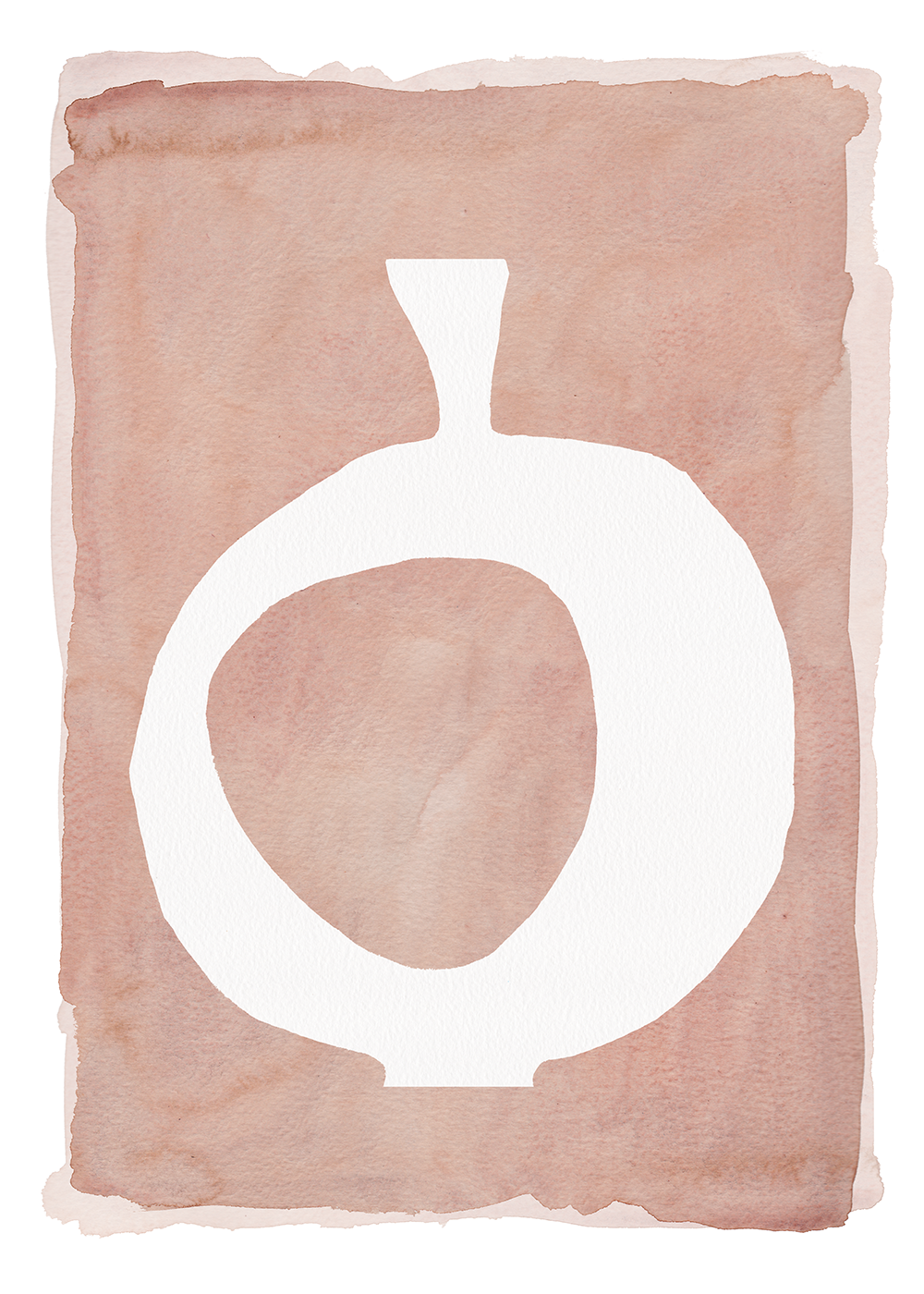 Sketch Vase 02 by Portugese artist Ana Frois explores the form of the traditional clay vases used to keep water fresh during the long Portugese summer. Created from built up layers of watercolur paint in soft pink tones, the form of the vase is appears from negative space.