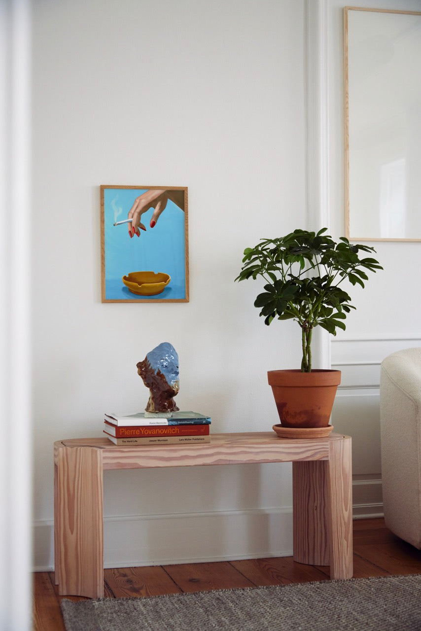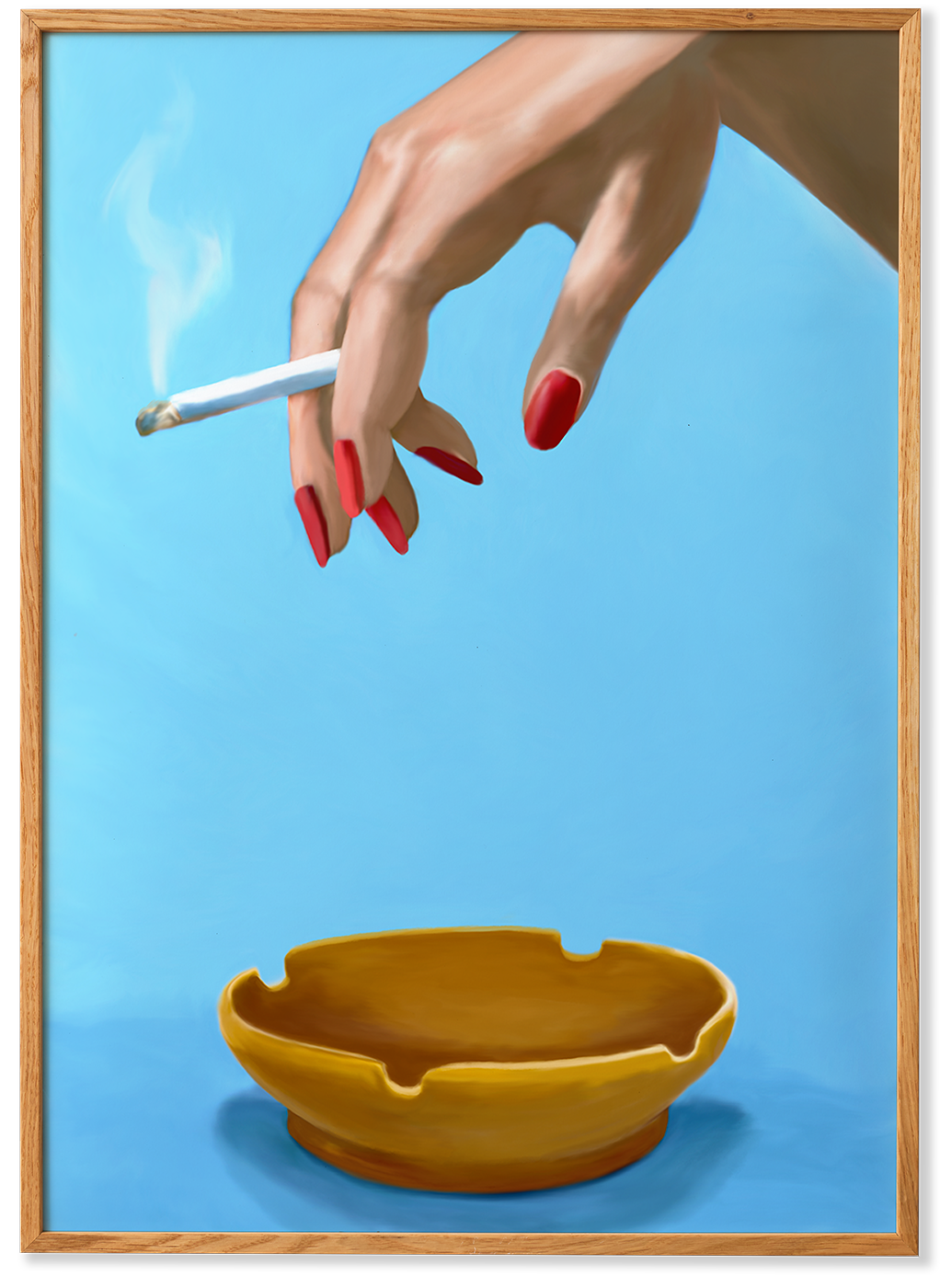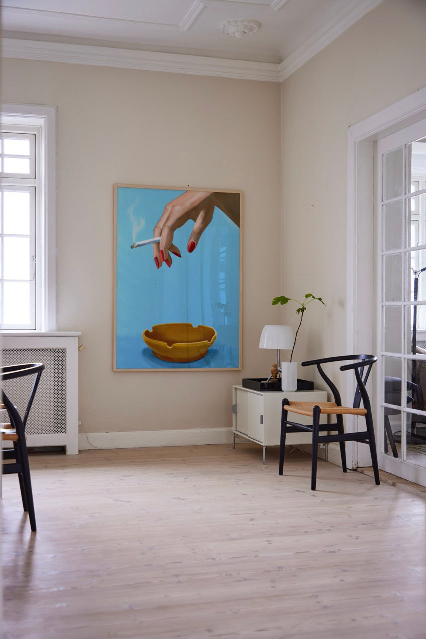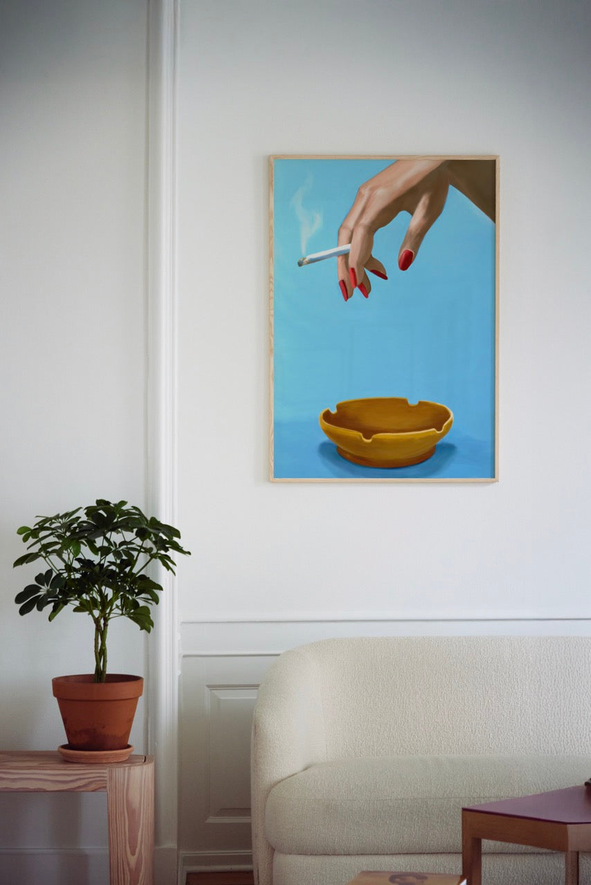 Smoking is a vibrant mesmerizing digital painting by Danish artist Julie Sommer aka Misfitting Things. The still life is a modern interpretation of a classic painting with a graphic minimalistic twist and a central object bound to fascinate some and put off others.