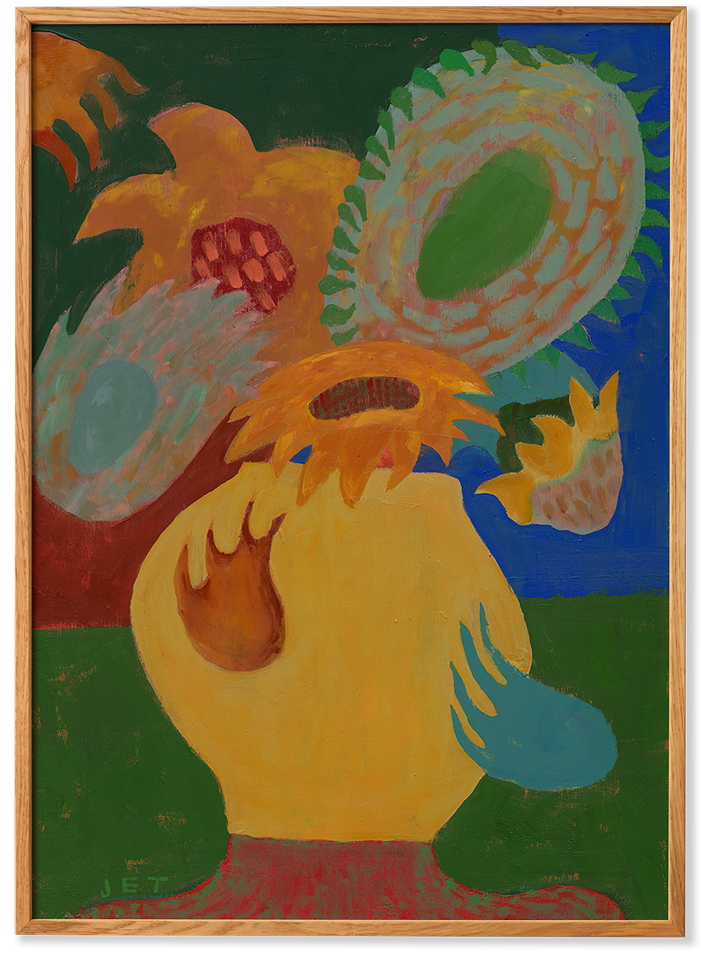 For his first collection of art prints for Paper Collective, English artist Jack Tierney has brought his intuitive and bold approach to a set of four still life motifs. Sunflowers 04 features the use of bold primary colours mixed with tones of green and an array of flowering forms created by a combination of oil and acrylic paint on wooden board. Together, the different mediums are combined with Tierney's expressive style to create a composition full of depth and character.