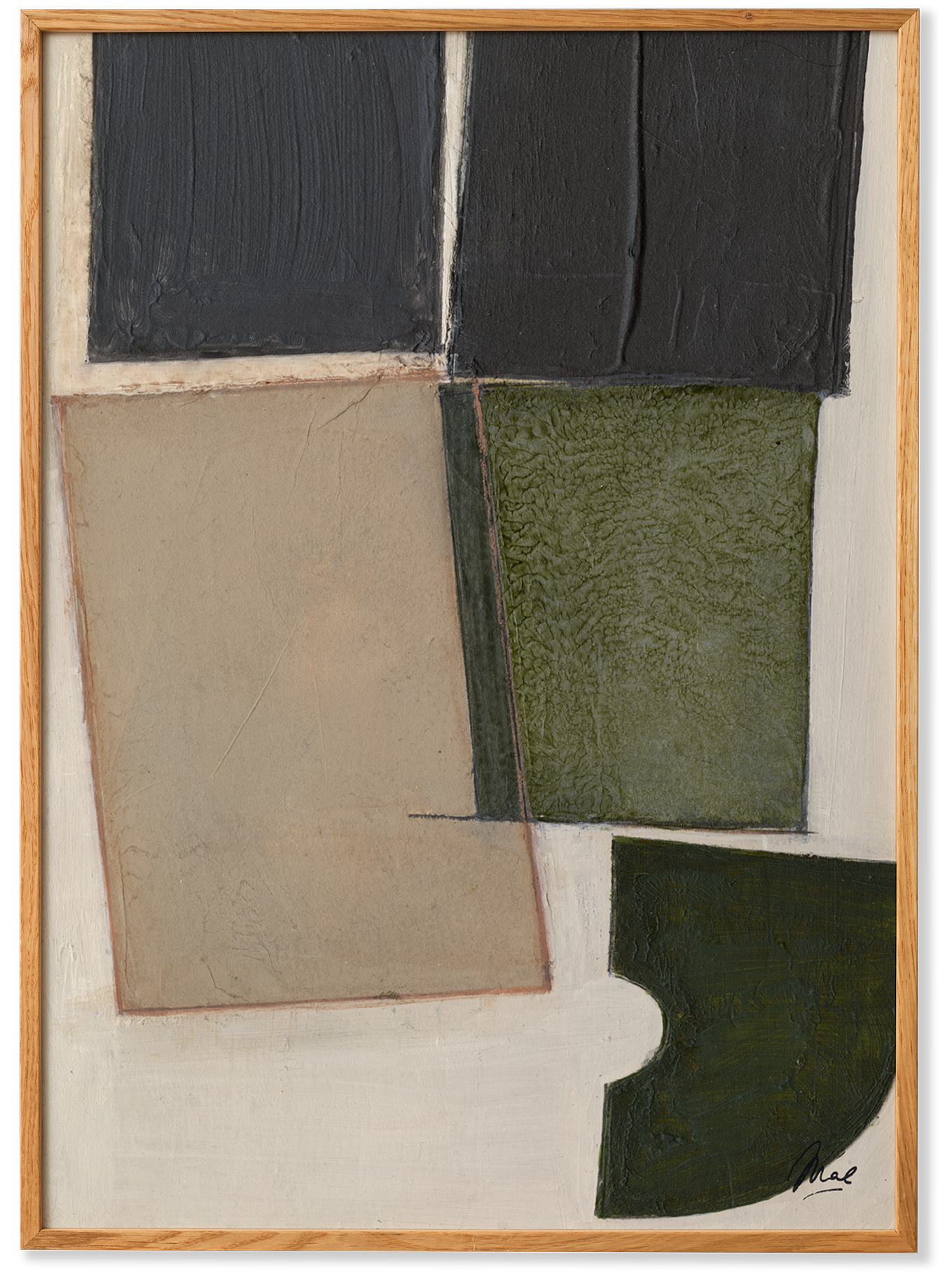 Using a restrained color palette of earthy tones, deep blacks, and muted greens, Symphony 01 by Mae Studio create a grounded yet dynamic visual rhythm, exploring contrast and connection. The minimal, meditative composition captures an interplay between structure and motion, composing a silent symphony.