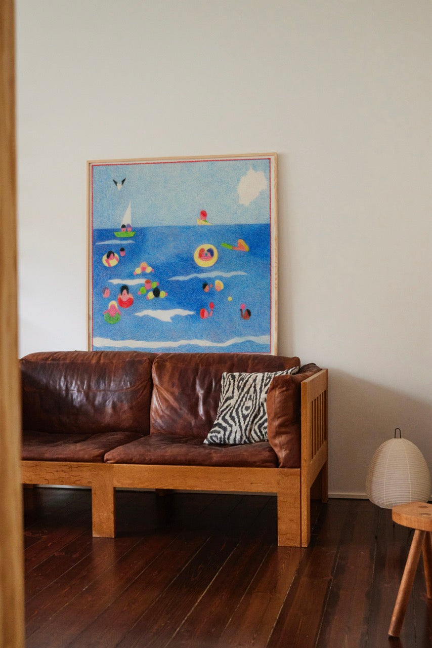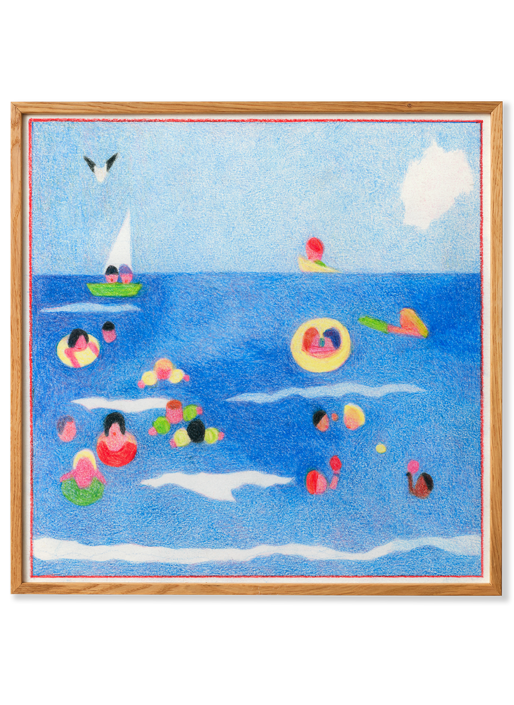 French illustrator and artist Line Hachem channels the warmer months spent by the seaside with The Bath. Viewing the sea as a playground for summer, Hachem uses this environment to play with her favorite medium of pencil, bringing bright colours and fun forms to her latest art prints.