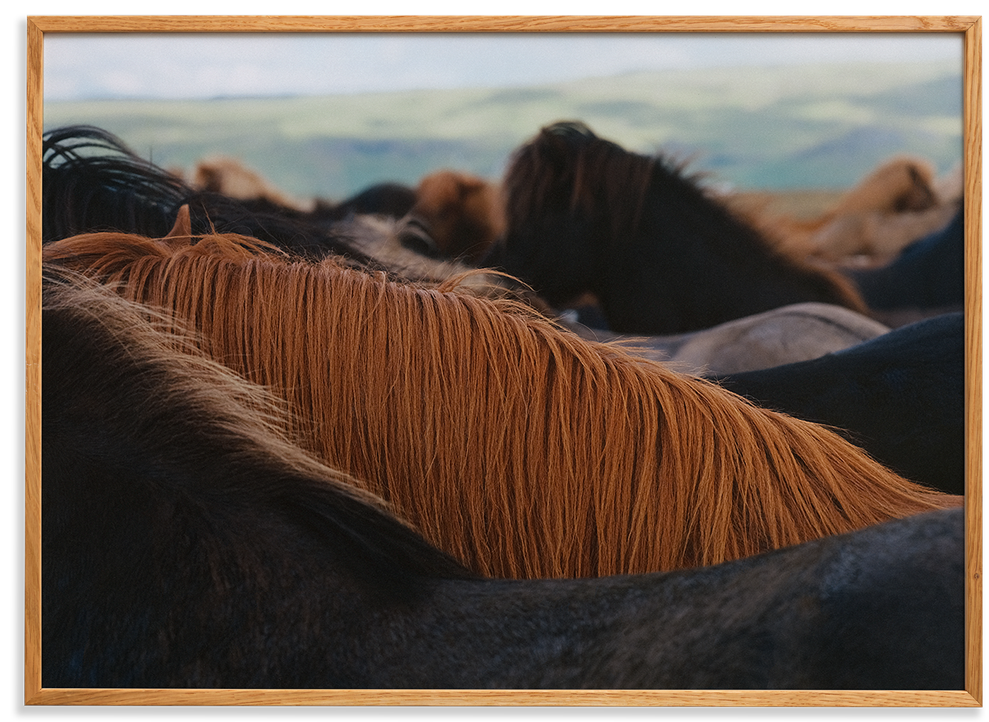 The Herd 01 forms one half of Mark Toren's first photographic collection for Paper Collective. Shot with film on a Kodak Ektar 100, the depth and character of the analogue development process remains in the final art print, with a flowing brown main captured in beautiful detail. Shot during a summer visit to Iceland, Toren came across a group of rangers who take their herd of Icelandic Horses across the island each year.