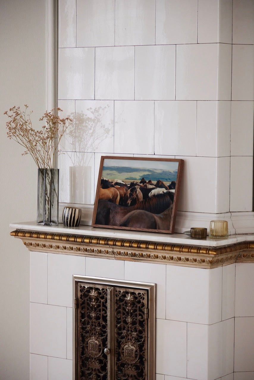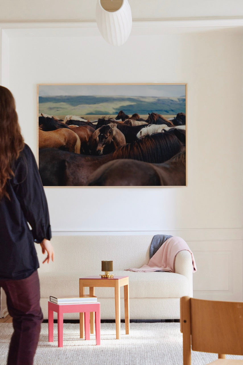 The Herd 02 forms one half of Mark Toren's first photographic collection for Paper Collective. Shot with film on a Kodak Ektar 100, the depth and character of the analogue development process remains in the final art print, with a single charecter spotted as if looking into the lens. Shot during a summer visit to Iceland, Toren came across a group of rangers who take their herd of Icelandic Horses across the island each year.