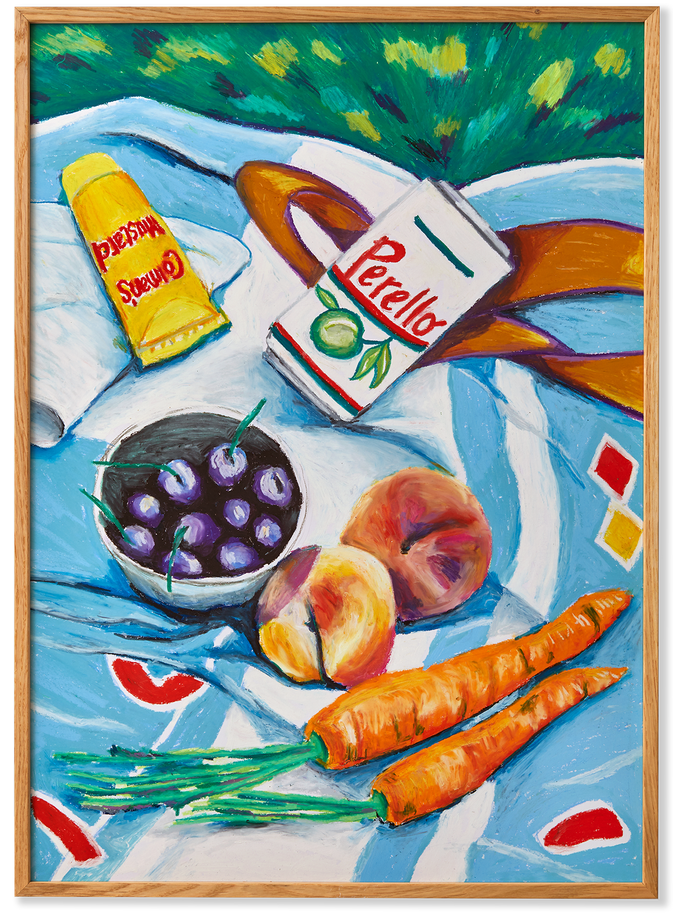 The Picnic is an artwork by Adee Ardon. Returning with a new set of artworks created through a vibrant use of pastels, Adee Ardon channels the warmer months spent in the sun with good food and great company. The vibrancy of her artwork is punctuated by a dominant use of blue within her latest compositions.