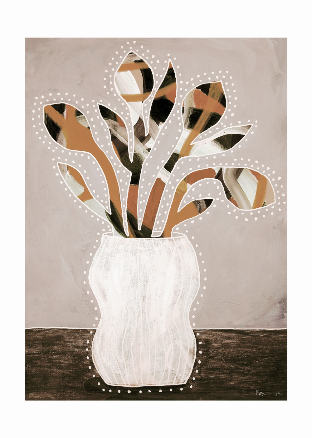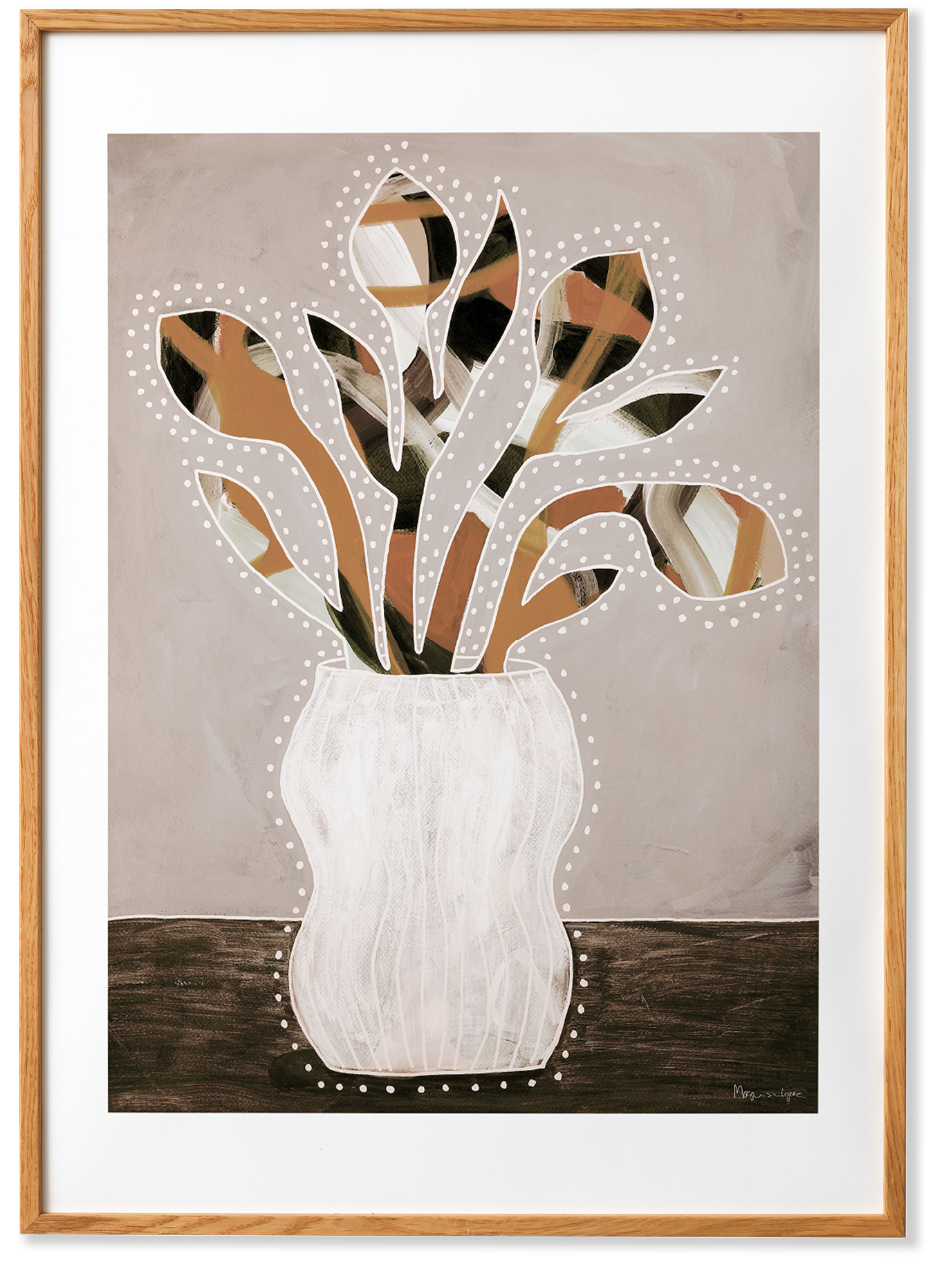 Berit Mogensen Lopez' latest collection of art prints combines a touch of simplicity to abstract floral compositions. "Tulips" is created from cut-out paper - stencil like, overlapping a layered background of painted forms. Visible through each flower, these emerging layers emphasise the objects within each composition, creating a unique depth to the collection.
