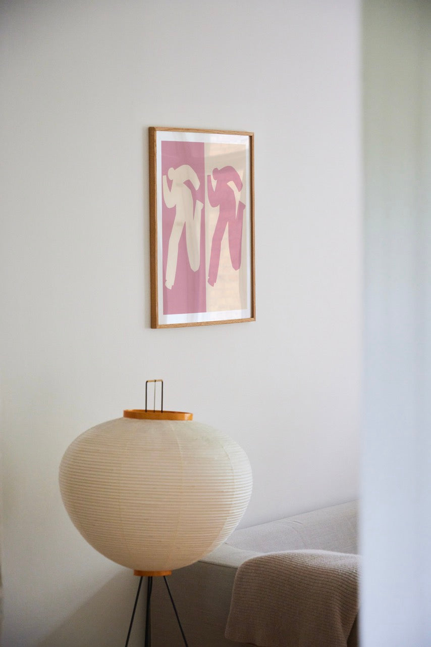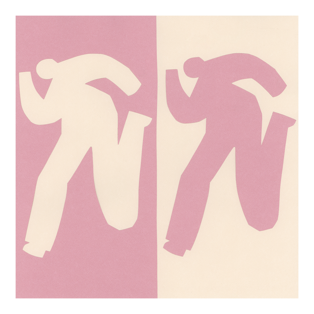 With her first collection for Paper Collective, Toronto based illustator Leia Bryans has focused on simple compositions that reflect everyday life. Two People creates a fun and captivating art print through a clever use of positive and negative space. Mirrored in corresponding colours, two cut out figures are crafted from origami paper in tones of warm white and pink.
